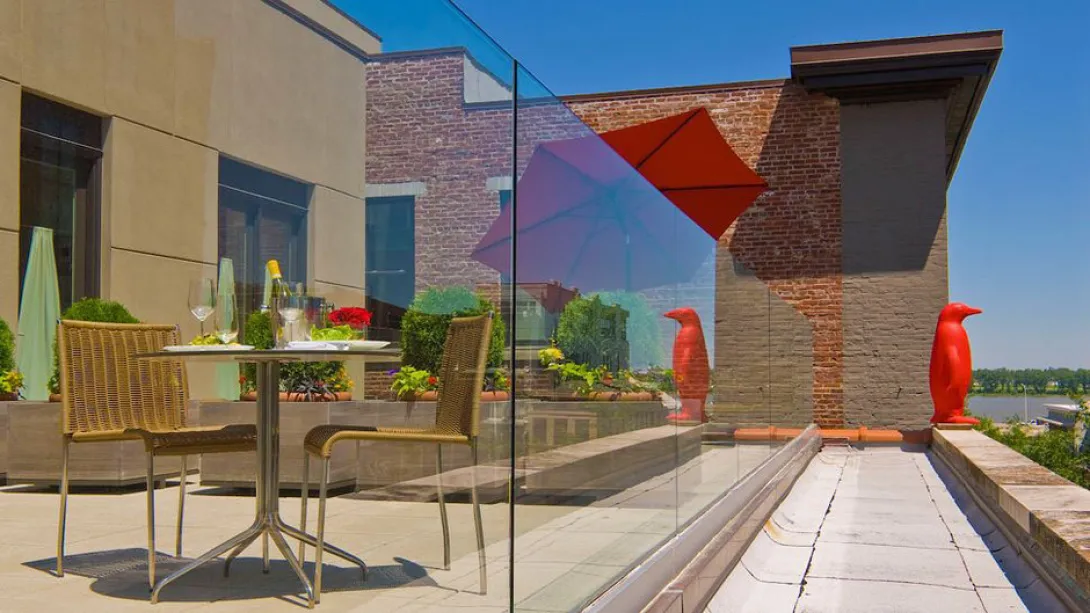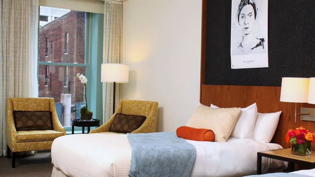 Situado no coração da cidade, 21c fica a poucos quarteirões de muitos dos museus da cidade, incluindo o Louisville Slugger Museum e Factory (focado no baseball) e o Muhammad Ali Center.Projectado pela arquitecta nova iorquina Deborah Berke, 21c tem a ambição dos hotéis das grandes cidades. é, aliás, o tipo de lugar que não passa despercibo mesmo que se situasse em Los Angeles ou Nova Iorque. Mas em Louisville, uma cidade pós-industrial onde o Centro-Oeste abre caminho para o Sul, é realmente algo impressionante.Como o nome sugere, o hotel é parte uma arejada galeria de arte contemporânea, outra parte um aconchegante hotel, com muita personalidade que lhe ficou dos seus dias de armazém de tabaco e bourbon no século XIX.Os 90 quartos são bastante urbanos, repletos de obras de arte, móveis de design e amenidades tecnológicas.Proof on Main, o restaurante do hotel, traz um toque de sofisticação ao cenário culinário do centro da cidade, com uma cuidada aproximação à culinária internacional com um toque da cozinha local.