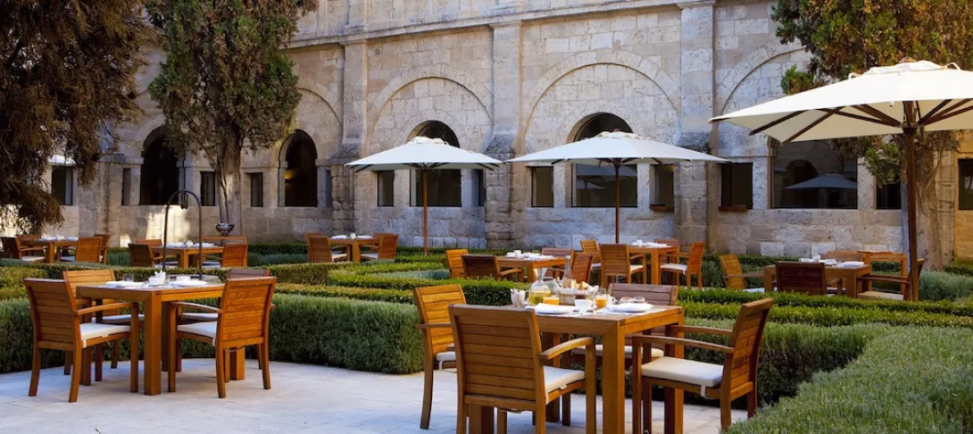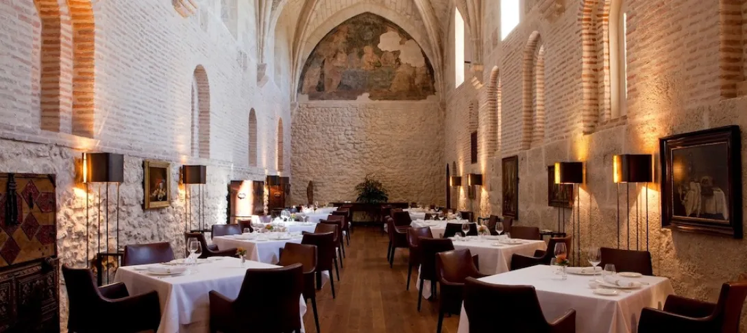 O restaurante é o Refectorio, o refeitório original da abadia, com um tecto gótico abobadado e um fresco do século XVII, hoje um santuário de alta gastronomia Michelin. Há ainda um bar, Vinoteca, que serve pratos, tapas e pequenos pratos preparados com ingredientes da região, acompanhados pelos vinhos nobres da Abadía Retuerta. Os pratos sazonais, das saladas às carnes grelhadas, são saboreados ao ar livre nos meses de primavera e verão no pátio do Cloisters.