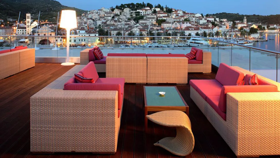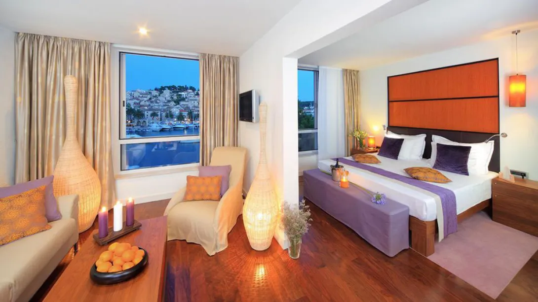 Adriana, hvar spa hotel é um refúgio à beira-mar, onde a localização é tudo; a minutos do centro antigo da cidade, mas no meio do mais novo yacht-spot local para rivalizar com o da Côte d'Azur...Situado sobre uma tranquila "promenade" na ilha croata de Hvar, Adriana, é um hotel moderno numa cidade encantadora. Mas não se deixe enganar pelo centro da pitoresca cidade ou pela catedral italiana e a praça veneziana, para não mencionar o luminoso porto Adriático: este lugar é tão moderno e ousado como qualquer outro hotspot europeu do Mediterrâneo, com os seus biquinis minúsculos e fantásticos iates a para provar isso mesmo.Com 59 quartos, os interiores, frescos, são um excelente refúgio do ar escaldante lá fora; fotografias artísticas a preto e branco alinham-se nas paredes de cores neutras com um optimismo gritante. Mas o Top é realmente o lugar para se estar: um magnífico e envolvente lounge no telhado a partir do qual se podem ver todos os locais de Hvar, (e mais alguns), com um Bellini na mão, e os ricos e famosos aos seus pés...