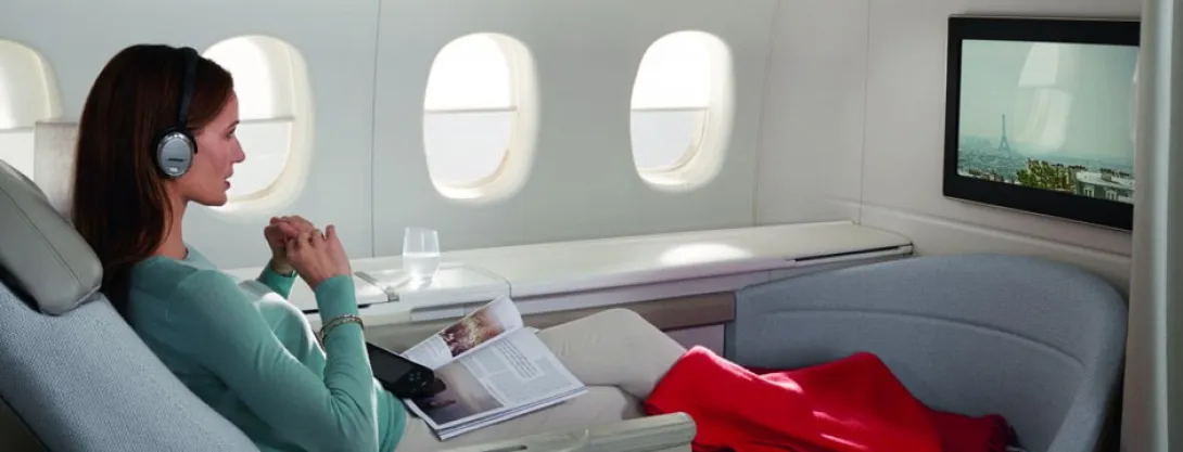Inserida num projecto para introduzir ainda mais luxo no seu programa de longo curso "Best and Beyond", a suite La Première irá equipar progressivamente 19 Boeing 777-300 Air France a partir de setembro de 2014.A nova cabina La Première tem agora quatro suites individuais exclusivas a bordo dos Boeing 777-300 de longo curso da Air France. A bordo, cada suite garante a privacidade ideal e permite que os clientes estejam total ou parcialmente sozinhos, em conforto absoluto.Bem-estar, relaxamento e serenidade andam de mãos dadas para uma viagem excepcional. Uma vez a bordo, o hóspede La Première irá sentir-se imediatamente em casa. O grande assento adapta-se a qualquer morfologia e promove descanso e relaxamento. Cada passageiro tem um ecrã pessoal de 24 polegadas (61 cm) HD touch screen, um dos maiores já vistos a bordo.Passar uma noite na La Première pode ser comparado a dormir num palácio: com um simples toque o banco transforma-se numa cama totalmente plana com mais de dois metros de comprimento. Os braços são totalmente retrácteis e oferecem um vasto espaço com 77 centímetros de largura.Quando o passageiro está pronto para dormir, os tripulantes instalam um colchão no assento, para um conforto impecável, um travesseiro e um edredon Sofitel My Bed. O travesseiro é colocado dentro de uma fronha de algodão macio para a suavidade final, garantindo uma perfeita noite de sono.A Air France "veste" cada suite com grossas cortinas, seguras com tirantes de couro. Um conceito único e ousado, que permite que o passageiro decida se quer ficar totalmente isolado ou apenas parcialmente. Uma vez as cortinas fechadas, o passageiro tem a sensação de estar sozinho em casa, totalmente fechado na sua cabina privada. A suite La Première torna-se, então, num vasto espaço, totalmente privado, com 3 metros quadrados disponíveis para cada hóspede.A suite também pode ser desfrutada na companhia de outro passageiro. Em frente ao banco principal, uma poltrona permite que o passageiro convide alguém para jantar ou simplesmente para uma conversa. A suite transforma-se então numa sala de estar, num restaurante, ou numa área de trabalho. Vale tudo neste espaço que muda de acordo com os desejos dos passageiros.