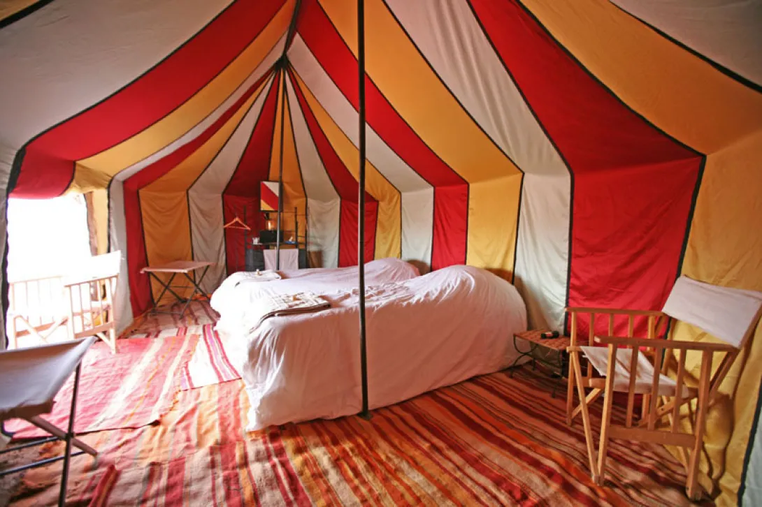 A companhia Akorn tem agora um campo móvel no deserto marroquino. E móvel significa isso mesmo: com completa flexibilidade na montagem, nenhum cliente ali ficou na noite anterior e aquela parte do deserto continua virgem...Com tendas caidale decoradas em tons quentes e num máximo de 24 hóspedes, este campo não permanente não dispõe de electricidade nem gerador, estando dessa forma assegurado o silêncio. Cada tenda dispõe de casa banho - instalada em outra tenda encostada à principal - com chuveiro de água quente e todas as outras "comodidades" de uma verdadeira casa de banho.Os jantares são servidos à luz de velas e das belíssimas e estraladas noite do deserto, e os almoços podem ser servidos no meio do deserto ou dentro de uma tenda.A viagem até esta inesquecível experiência faz-se, primeiro de jipe, e depois de camelo até à instalação do camp através das dunas do Sahara. Para quem preferir a viagem também pode ser feita de helicóptero, descobrindo assim uma outra face de Marrocos.