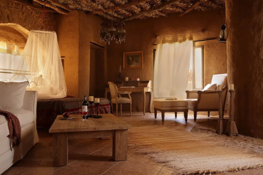 Entre um cordão de pequenas aldeias que corre ao longo de belas plantações de palmeiras, fontes de água, ruínas romanas e faraónicas, o oásis Dakhla está instalado entre a maior extensão de dunas do Egipto e uma escarpa de pedra calcária fossilizada a seis horas de Luxor e a dez do Cairo. Até há pouco tempo, arqueólogos e turistas em passeios de 4x4 pelo deserto eram os únicos visitantes estrangeiros.Al Tarfa define-se a si próprio como o primeiro "eco-luxury" lodge do Egipto. Tem apenas 20 suites e o modelo é mais o de um African safari camp do que de um resort; não tem televisão ou internet (excepto na recepção), e a diária inclui as três refeições e as actividades no deserto, como as caminhadas, os passeios de camelo, de cavalo, visitas às aldeias, tours pelos sítios arqueológicos e pôres-do-sol feitos de chá e de oásis...O resort inclui ainda um lounge bar central, piscina, estábulo e um pequeno mas requintado spa.Os quartos foram construídos por forma a aproveitar-se a paisagem e são decorados com camas de ferro, mesas em madeira trabalhada e tecidos e tapetes locais; todos dispõem de terraços exteriores e alguns incluem lareiras e piscinas privadas. Como não poderia deixar de ser, o lodge é especialmente romântico à noite: é o lugar ideal para os amantes do deserto que querem fugir das multidões e do tuismo convencional.Ain Al Dome, Al MansuraDakhla Oasis, Egipto
