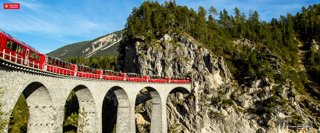 Atravessar os Alpes neste comboio é certamente uma das formas mais espectaculares de conhecer a região. Os entusiastas das ferrovias afirmam que o percurso de Albula entre Chur e St. Moritz é a rota das montanhas mais pitoresca do mundo, dando grande atenção ao viaduto Landwasser com 65 metros de altura e curvas incrivelmente arrojadas. O percurso passa num total de 55 túneis e mais de 196 pontes no caminho entre Chur a Tirano.