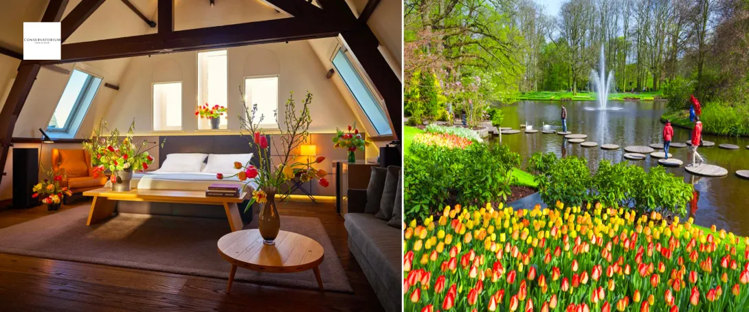 Os jardins ocupam 32 hectares, onde se podem apreciar espectáculos de flores, surpreendentes jardins inspiradores, obras de arte únicas e eventos maravilhosos. Não perca a exposição Túlipomania no Pavilhão Juliana.
