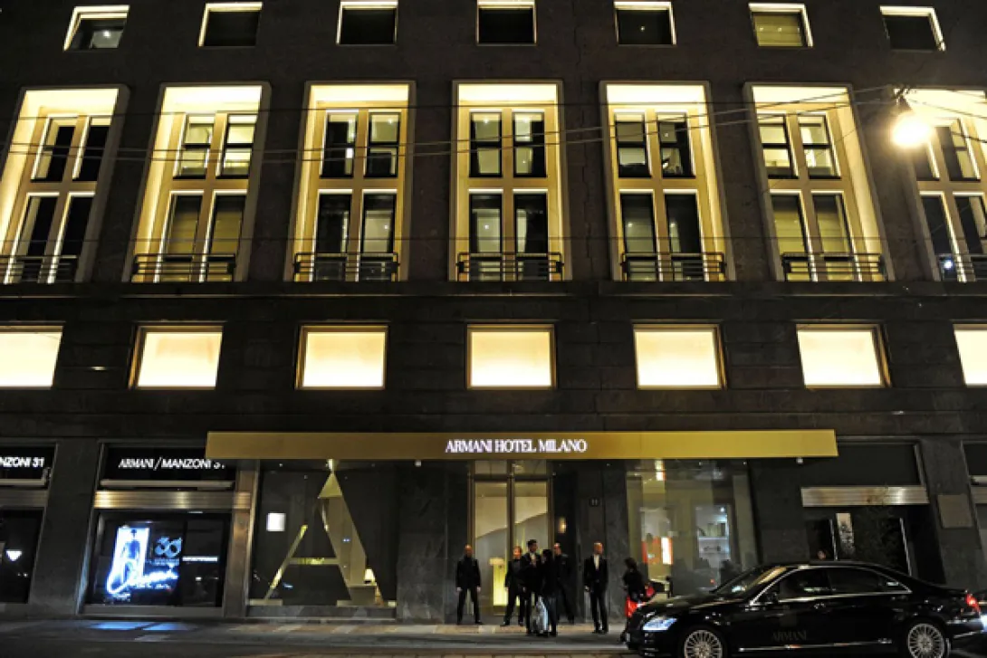 Não poderia ser mais apropriado que o novíssimo Armani Hotel Milano ficasse situado na via Manzoni, uma das veias que conduzem ao coração do designer shopping district da cidade.Os interiores têm tudo a ver com o sleek style da casa Armani e a sua linha de roupa; continuação da sua inspiração oceânica da colecção de pronto-a-vestir Primavera/Verão 2012 - sofisticação em prata e ouro.O exterior, concebido por Enrico A. Griffini em 1937, é muito mais "agressivo" no design. Um copo-chapéu está assente sobre uma base racionalista. De longe toma a forma de um "A".As vistas sobre o Duomo são particularmente impressionantes dos andares superiores, que atingem apenas uma parte da altura do primeiro hotel Armani, instalado no Burj Khalifa (Dubai), com os seus 160 andares.Com 95 quartos, o hotel dispõe de um Armani/SPA, Armani/Business centre e de um Armani/Ristorante, que inclui uma mesa de chef dentro da própria cozinha.