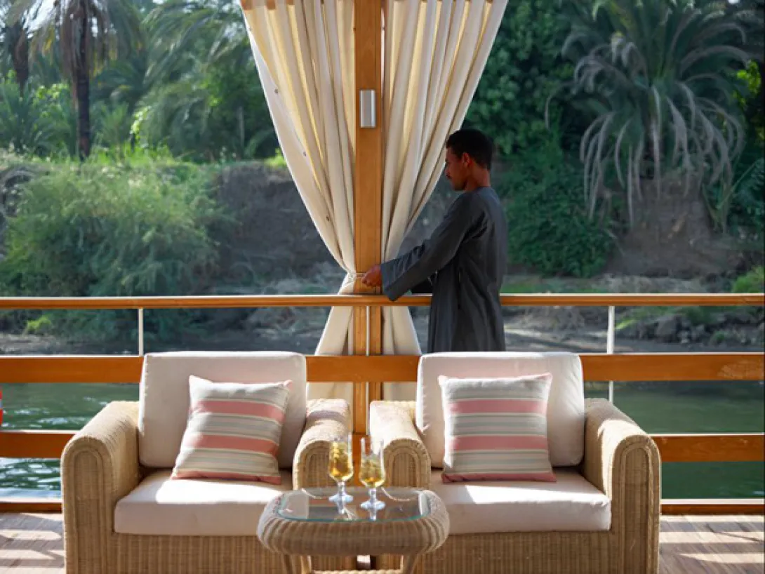 Dahabiya são belos veleiros, muito populares entre os ricos e aristocratas dos good old day's para viagens no Nilo.Nos dias de hoje, as Dahabiyyas estão a "renascer", mas com todos os luxos e comodidades dos tempos actuais. Os cruzeiros em Dahabiya eram utilizados, originalmente, para transportar celebridades e famílias reais, um barco de recreio de luxo para passear no rio Nilo.Como o próprio nome sugere, Armonia foi concebido para proporcionar harmonia e uma inesquecível experiência aos viajantes. A sua filosofia de "no engine" permite manter e reviver a história destas magníficas embarcações e a calma que só velejar transmite. Dahabeya Armonia tem apenas 4 cabinas e uma suite e dispõe de bar, sundeck, jacuzzi, áreas de estar e de sombra, sala de jantar, lounge, internet e televisão. Todas as cabinas têm casa de banho.O Armonia realiza cruzeiros de 5 e 8 dias e visita Assuão, Kom Ombo, Edfu e Luxor, entre outros lugares nas margens do Nilo.