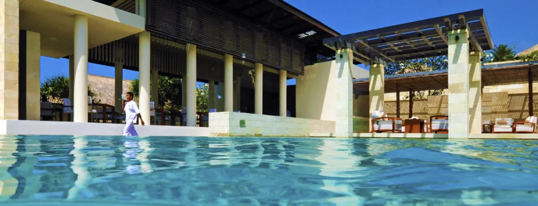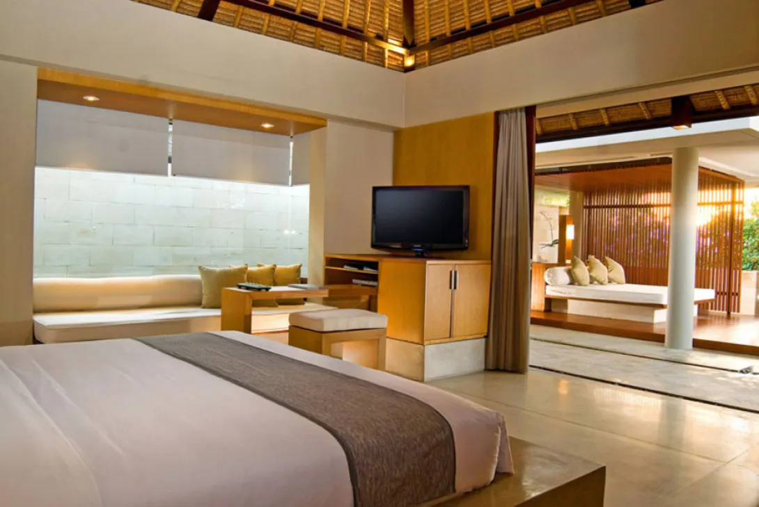 Bale é o nome dado aos tradicionais pavilhões balineses e é também o nome perfeito para este hotel composto de vinte e seis pavilhões invadidos pela luz do sol e a brisa do mar. Mas aqui não há nada de tradicional. O interior apresenta linhas arrojadas e simétricas, madeiras escuras elegantes e mobiliário de inspiração Zen, um estilo que funcionaria até em Milão. Por outro lado, a imensidão dos quartos, com as suas camas king size, denuncia que estamos num lugar especial.Os pavilhões são ladeados por paredes de arenito e possuem piscinas privativas, um bengong - gazebo ao ar livre equipado com sofá-cama para os hóspedes se refrescarem na brisa - e, claro, chuveiros ao ar livre e banheiras. A recente remodeação acrescentou elegância aos espaços públicos do Bale e deu mais ênfase à vida social. O lobby foi expandido e ganhou um novo restaurante, o Tapa Bistro - o terceiro do hotel, além do sofisticado Faces e do Bliss, voltado para o bem-estar. A área da piscina principal também foi ampliada para oferecer mais espaço para um pouco de descanso durante o dia ou um cocktail. Essencialmente, hospedar-se num destes bungalows é como ter uma residência privada ultramoderna: total privacidade, total serenidade e todas as modernas conveniências. E, claro, serviço de quarto 24 horas, excelentes tratamentos de spa e ginásio.