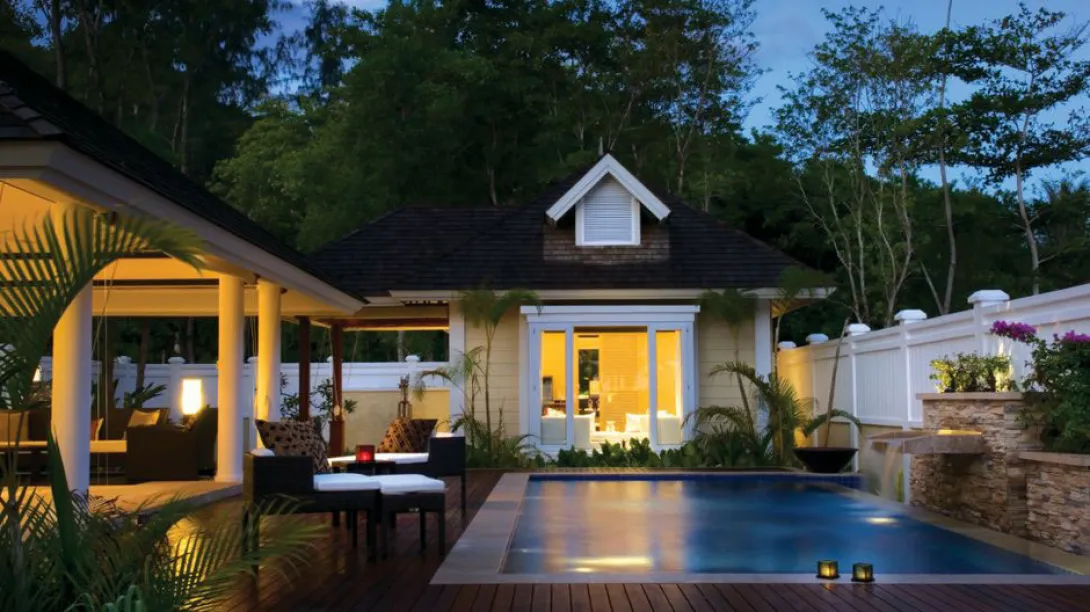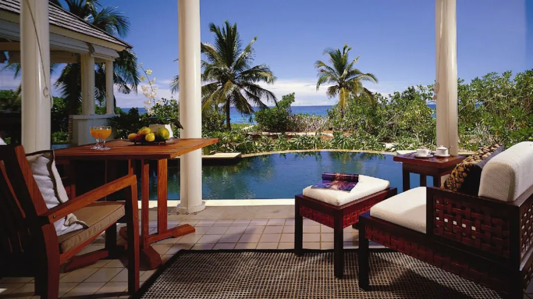 A Presidential Villa ocupa uma pequena baía. Nenhum luxo foi esquecido neste secreto refúgio: uma piscina escavada num grande bloco de granito, jacuzzi exterior, sundeck, um pavilhão transformado em sala de estar, outro