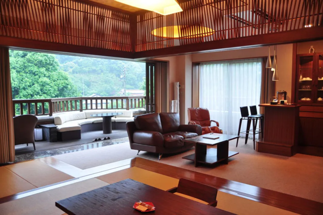 Este ryokan fica na província de Yamaguchi, no extremo oeste da ilha de Honshu no Japão, nas montanhas perto da cidade de Nagato. E, como na maior parte rural do Japão, é um lugar facilmente acessível, graças a uma rede ferroviária de primeira; e, também como em todos os melhores lugares da zona rural japonesa, é literalmente um outro mundo...é uma forma bem tradicional de hospitalidade, mas isso não significa que esteja preso ao passado. Os seus 18 quartos são uma mistura de estilo tatami e móveis baixos e alguns clássicos do design ocidental, como se um ryokan tivesse reconsiderado o seu estilo, introduzindo um design moderno e consciente.A presença de requintes electrónicos e confortos típicos de hotéis de luxo é uma surpresa, mas não afastam a atracção principal que é, como sempre, a vista sublime, neste caso através de imensas janelas do chão ao tecto. Claro que, mantendo o típico estilo, o ênfase nos banhos continua: comunitariamente, nos banhos principais, ou nas casas de banho privadas, ao ar livre.