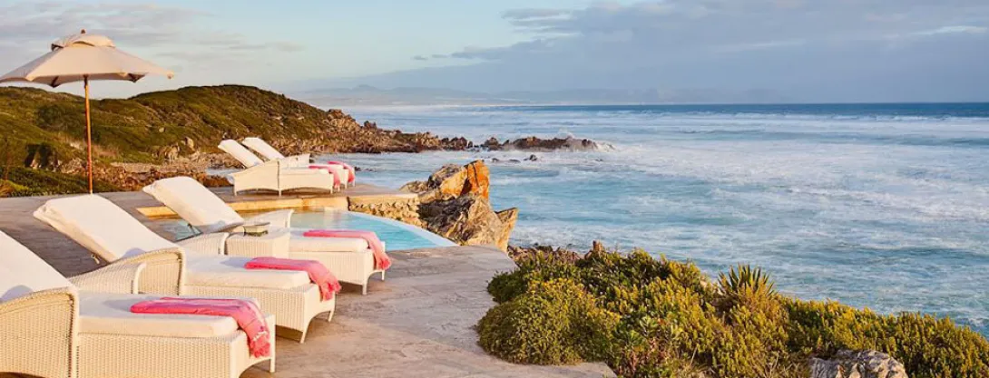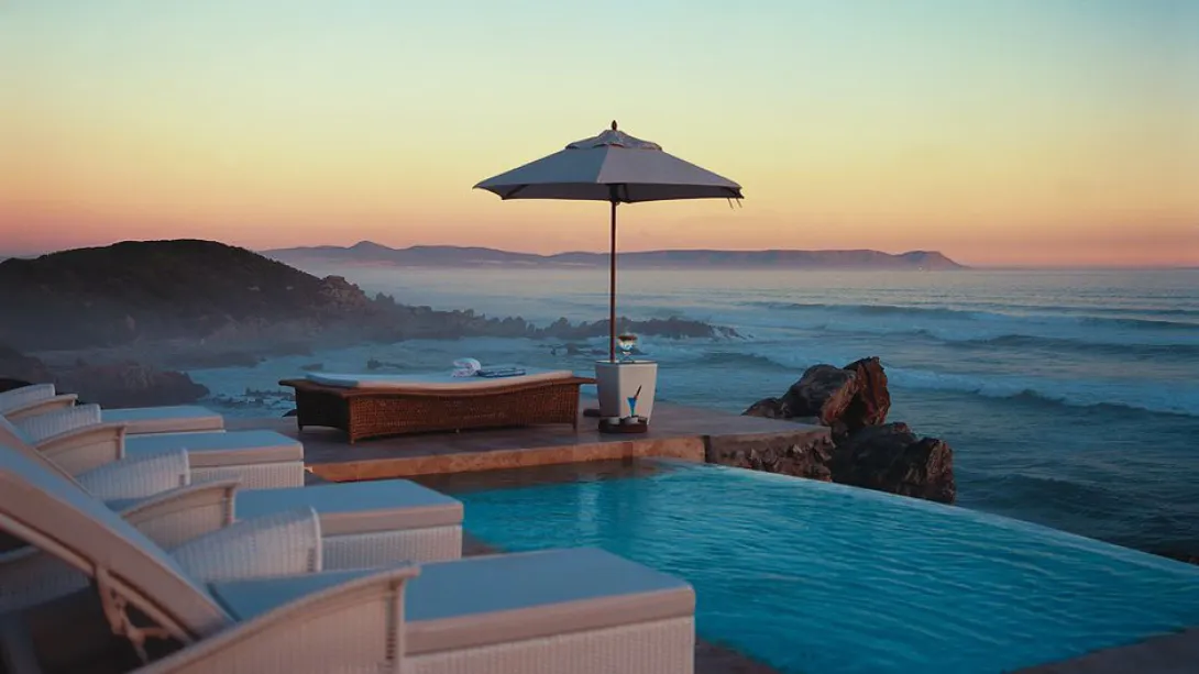 O exterior despretensioso de Birkenhead House, 160 km a sudeste de Cape Town, esconde um hotel construído em redor de uma piscina central, que desce até ao restaurante da falésia e piscina. Embora o precipício não seja particularmente elevado, ficar aqui é como ter lugares reservados para o melhor show da cidade: só para ficar com uma ideia, estas são as mais paradisíacas praias da região, Voëlklip e Kamma Bay, lar de baleias que, entre junho e novembro, aqui vêm ter as suas crias. Na base do penhasco, um caminho de 10 quilómetros conduz directamente à cidade, e o hotel oferece um serviço de transporte para a viagem de regresso.Com a sua diversificada gama de actividades, renomada cozinha e vistas deslumbrantes, Birkenhead é um lugar inesquecível.As criações culinárias de origem local preparadas pelo chef residente do Birkenhead incluem pães caseiros, tempura de morangos e peixe sempre fresco. A cozinha é uma mistura africana contemporânea e francesa tradicional de influências asiáticas e italianas.O staff do Birkenhead serve as refeições em qualquer lugar, mas as mais apreciadas (e pedidas) são ao ar livre com vista para o oceano.