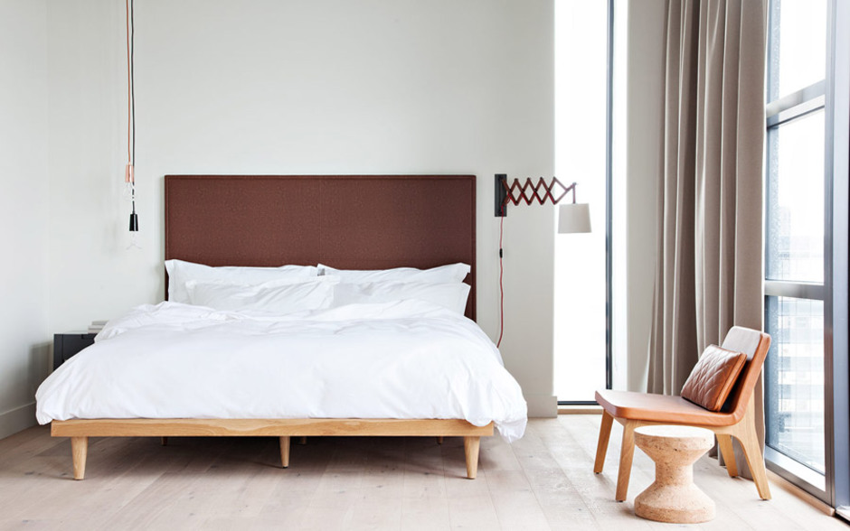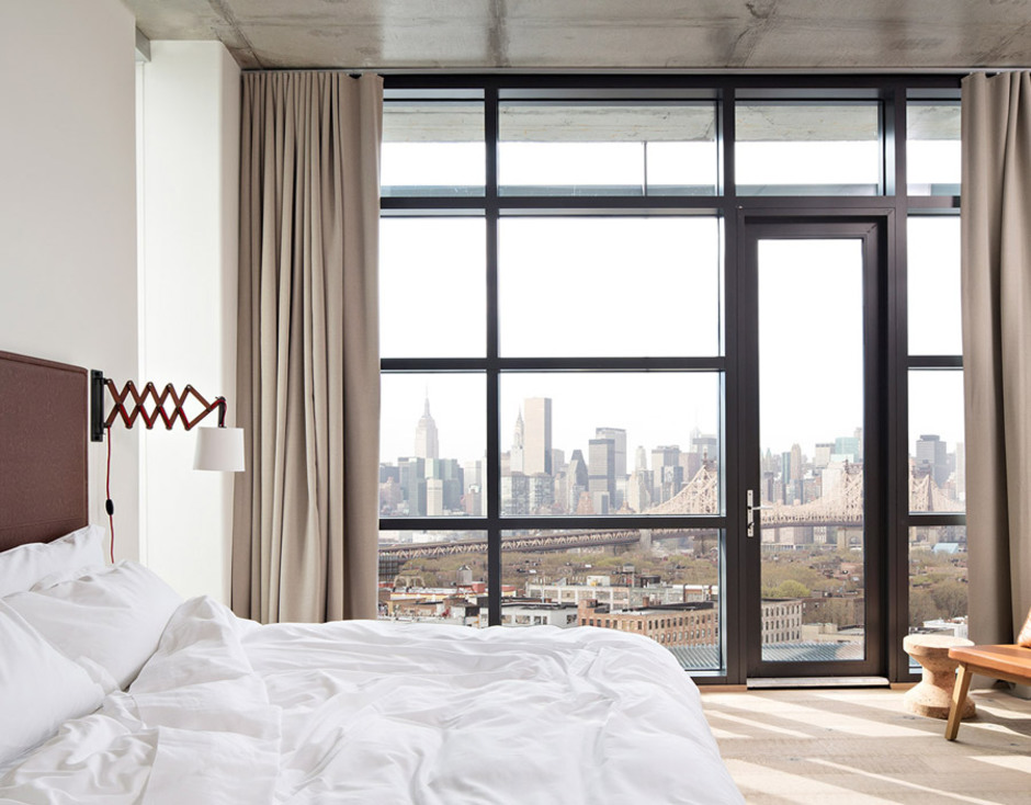 Há um sentimento de "segundo melhor" sobre alguns hotéis de Brooklyn e do Queens... mas que não se aplica, definitivamente, ao Boro Hotel. Do outro lado do East River desde o centro de Manhattan, na fronteira entre Astoria e Long Island City, este hotel, para defini-lo de uma forma simples, é um espanto - os arquitectos Grzywinski + Pons transformaram uma estrutura existente (mas nunca utilizada) num boutique hotel que é, em partes iguais, orgânico, acolhedor, fresco e industrial, com vistas deslumbrantes e uma generosa ajuda da luz solar.A textura é a grande jóia da coroa: cimento, madeira de carvalho, couro, cerâmica e cortiça fornecem a variedade, enquanto linhas minimalistas e clean transmitem a unidade visual. Os 108 quartos são acolhedores, simples, quentes, convidativos e intimamente ligados à vida da cidade.O lobby do hotel é a extensão dos espaços públicos. Há um restaurante e bar no último andar e não há falta de opções de refeições e bebidas no bairro circundante - não se esqueça que está apenas a uma estação de metro de Manhattan.