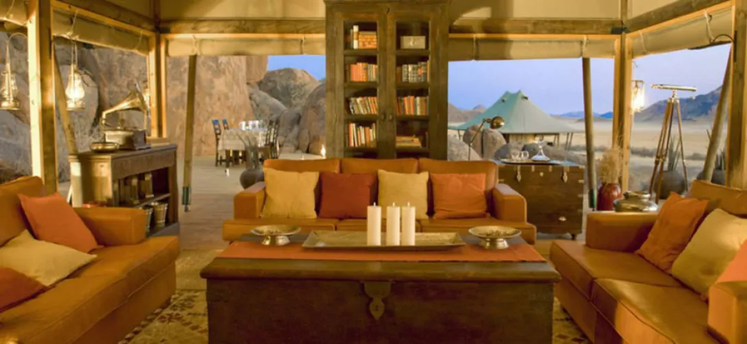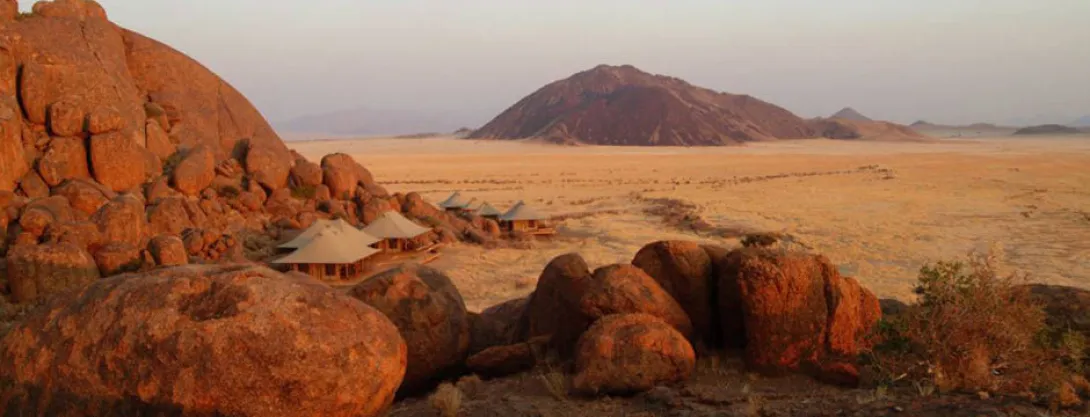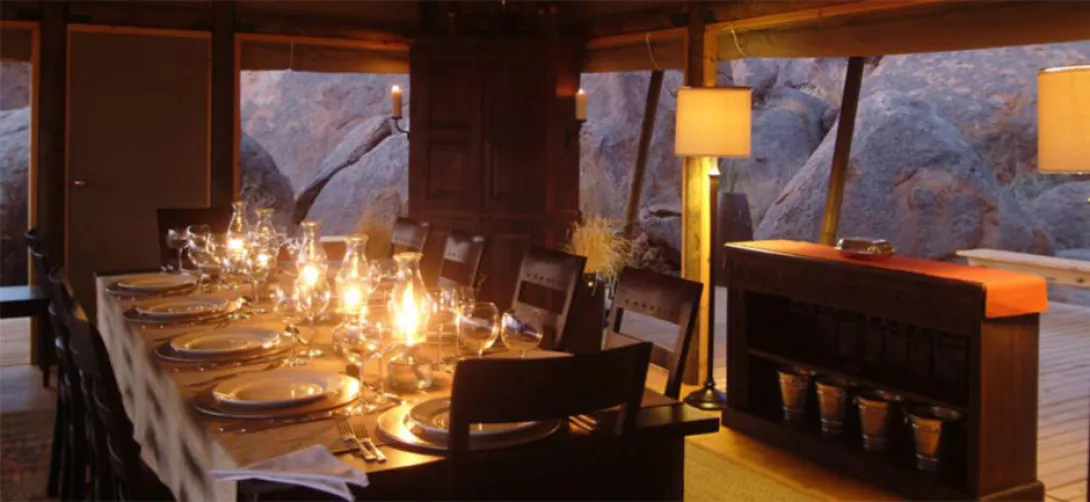 Boulders é, sem dúvida, o campo mais exclusivo em Wolwedans. Situado 45 quilómetros ao sul de Wolwedans e abraçado por enormes pedras de granito, Boulders Safari Camp é a mais recente adição à colecção Wolwedans. Ali dormem oito pessoas no máximo, instaladas em quatro tendas espaçosas e confortáveis.Na área principal e comum, uma tenda faz as vezes de lounge e de sala de jantar, com um deck de pequeno-almoço e lareira aberta.A partir do Boulders Safari Camp explora-se o mais profundo da Reserva Natural NamibRand. Safaris guiados, ou duas a três horas de safari a pé passando ao longo das antigas terras de caça dos bushmen, preenchem os seus dias.Os pôres-do-sol podem ser apreciados a partir do alto de um plateau de rocha montanhosa, transmitindo impressões épicas da grande beleza da paisagem...Boulders proporciona uma experiência clássica de safari e o acampamento é ideal para uma estadia de duas noites - de preferência reservado em combinação com uma ou duas noites em qualquer um dos outros campos Wolwedans instalados nas dunas.Todas as refeições nos camps Wolwedans são generosas e despretensiosas: exalam um sentido único de ocasião com mesas elegantemente dispostas, à luz de velas e menus exuberantes na língua local Nama. Wolwedans tem, aliás, a reputação de servir as melhores refeições no circuito safari da Namíbia. E para justificar esse "elogio", oferecem uma inovadora, saudável e sofisticada 'bush-cuisine', preparada com produtos orgânicos frescos e acompanhada por excelentes vinhos locais e sul-africanos.