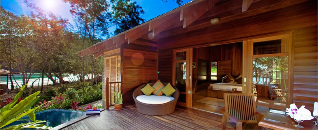 Tudo ali é exótico, desde a sua localização numa ilha de recife de coral, ao seu nome, que significa "hibisco" em malaio.As suas 47 villas estão instaladas entre uma exuberante vegetação tropical, e as suas varandas privadas oferecem vista para a praia em forma de crescente branco, implorando apenas para nadar, tomar sol ou relaxar na areia macia. As villas estão um pouco afastadas da praia, o que neste caso significa vistas panorâmicas e privacidade. Variam de simples casas de um quarto - se é que podemos chamar uma villa com vista para o mar de simples - até casas com 3 quartos no topo da montanha. E se sentir falta de água não se preocupe: pode sempre reservar uma villa com piscina particular. Após alguns dias em Bunga Raya, pode quase transformar-se numa sereia - e mesmo se não lhe crescer uma cauda, irá com toda a certeza ganhar pés de barbatana! Faça mergulho com os milhares de peixes coloridos, kayak no Mar da China, ou entre no iate do resort e delicie-se com um fantástico cruzeiro.Para os marinheiros de primeira viagem também não faltam opções, como passeios pelos caminhos da selva circundante, ou uma relaxante massagem no spa.Depois, experimente as delícias gastronómicas de qualquer um dos três restaurantes do resort: Pantai Grill, Wine Cave, ou o Koi.No final do dia, os lençóis de algodão Frette estarão à sua espera nas villas, cuidadosamente construídas em madeira por artesãos locais.