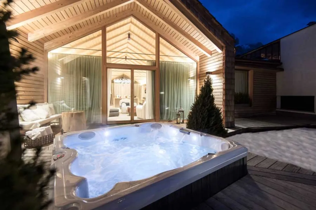 O chalet possui 3 quartos, 2 suites e um deluxe duplo, cada um com casa de banho privada e pode acomodar no máximo 8 pessoas (6 adultos + 2 crianças) – inclui serviço de limpeza diário e abertura das camas à noite.