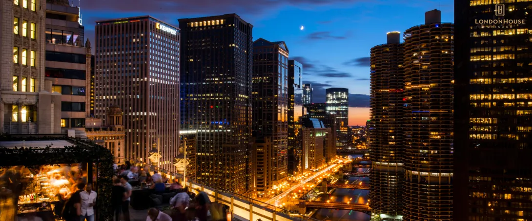 O LondonHouse Chicago conjuga a arquitectura clássica da 360 North Michigan Avenue com um toque moderno. Oferece um ambiente sofisticado e algumas das melhores vistas sobre a cidade a partir do lounge na sua cobertura.