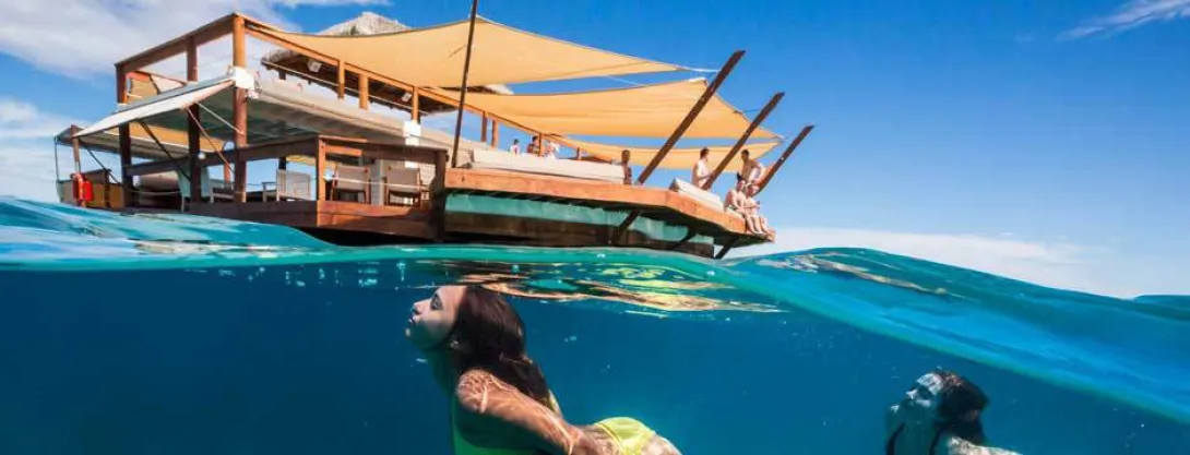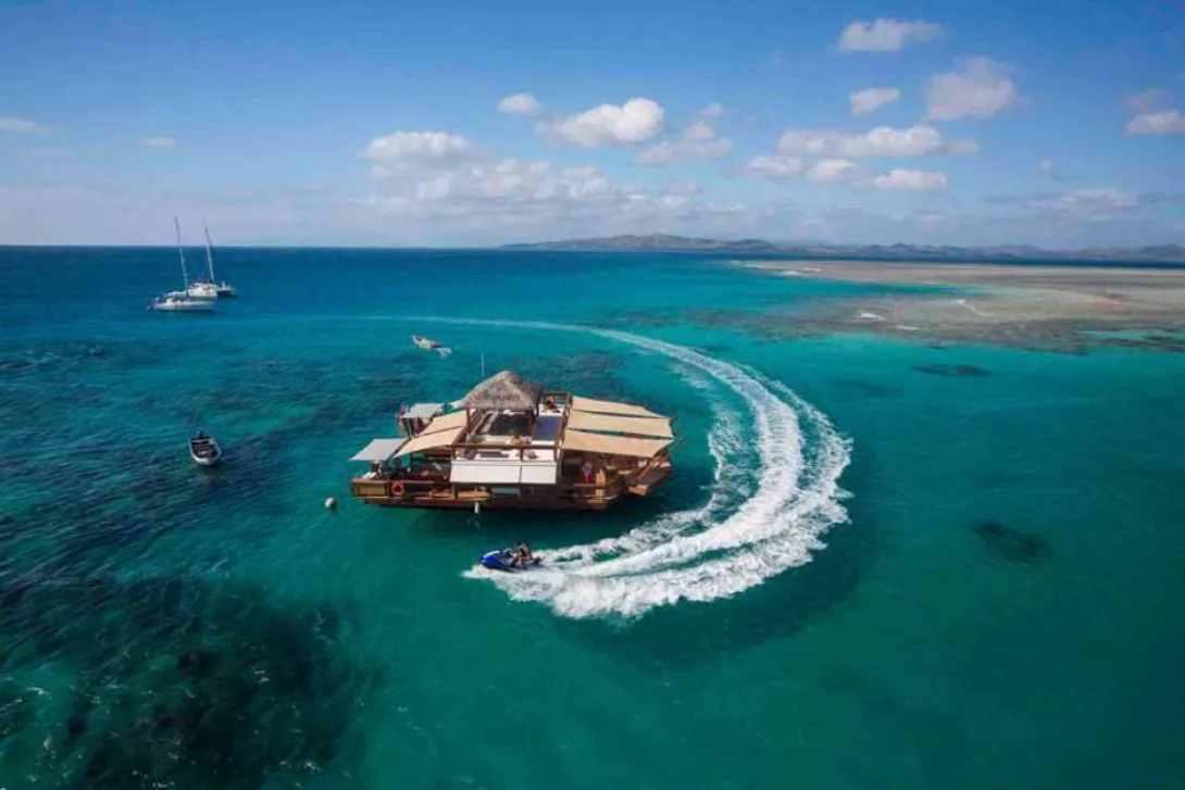 Ainda não decidiu onde vai fazer a sua próxima festa? Pois aqui fica uma dica: Cloud 9...Cloud 9 é a única plataforma flutuante das Fiji com um bar e uma pizzaria a lenha completamente cercada por água azul turquesa.Este local único tem um sistema de som surround, esplanadas, cadeiras penduradas e espreguiçadeiras. Cloud 9 foi construído com precisão e criatividade, transmitindo uma experiência única.O lugar é realmente único e pode realizar todos os eventos literalmente no oceano: seja um casamento, uma festa privada, ou uma função corporativa.Sem fees de acesso ou amaragem, Cloud 9 fica perto da principal ilha de Fiji, Viti Levu, entre as águas de Vanua Malolo, no Ro Ro Reef. Está a 40-45min de barco a partir de Port Denarau, e apenas a 10 em speed boat desde Musket Cove Resort, Lomani Resort e Plantation Resort.
