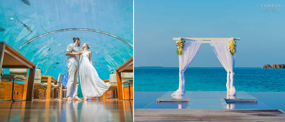 O restaurante Ithaa pode ser reservado para jantares privados, casamentos e ocasiões especiais.