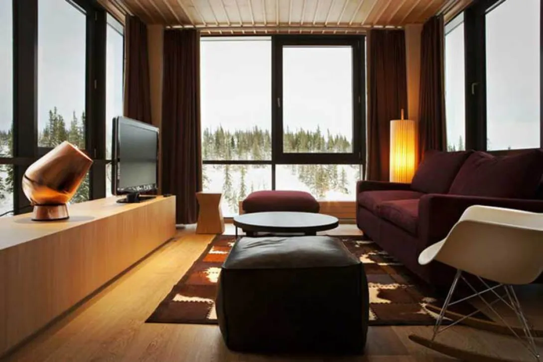 Copperhill Mountain Lodge é um lugar único. Dali se extraiu cobre durante grande parte do século XIX, e o metal que cobre uma parede do átrio de seis andares e a chaminé sobe acima da grande lareira. As vigas e revestimento exterior são de pinho sueco; o design do tapete no andar de cima é baseado no padrão Sami; até mesmo o fio de couro usado para ligar corrimãos e lâmpadas é de uma fábrica de cadarço tradicional da região.O arquitecto norte-americano, Peter Bohlin, é mais conhecido pelo seu trabalho em Seattle, na casa de Bill Gates; mas ele é de "extração" sueca e Copperhill trouxe-o de volta às raízes. Ainda assim, o hotel tem toques americanos, também: as paredes internas e o bar são revestidas com pinho do Oregon.A criação de Copperhill - vendido apenas um ano após a sua inauguração, em 2009 - foi marcada por problemas financeiros, e a sua conversão pré-abertura, de condomínio em Hotel, tem comprometido alguns layouts...As melhores opções de entre os 112 quartos são os simples Bronze doubles (com ardósia e chão escovado de pinho) e as Silver suites. Estas últimas têm salas de estar com janelas em três lados e casas de banho com portas de vidro, banheiras em forma de ovo de Agape, e são um ponto de vista ideal para contemplar as puras e arredondadas montanhas de ski de Åre.Quase como salas de terapia convencional, o spa Copperhill tem tendas em estilo Sami, construídas a partir de madeira de bétula, e em que os tratamentos são realizados em pele de rena com som ambiente de música folclórica local. Os produtos de spa, incluindo um óleo de bétula cujo aroma recorda as florestas locais, são de Kerstin Florian, outro sueco-americano.A área esquiável abrange várias colinas ao longo das margens do lago Åre. Um desafio ímpar é subir ao topo do Åreskutan. Outras actividades incluem motos de neve e passeios em trenós puxados por cães.