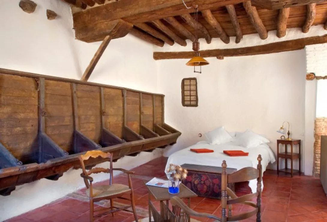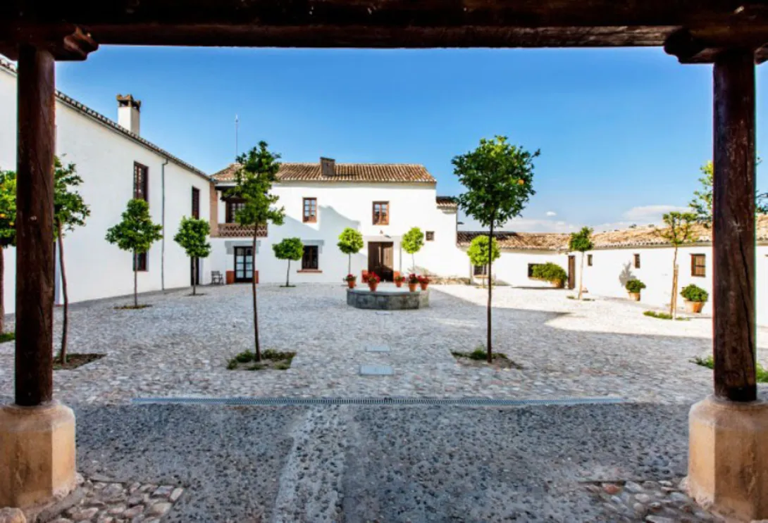 A 20 minutos de Granada, Cortijo é perfeito para descobrir a Andaluzia. Tanto no verão como no inverno, pode desfrutar de passeios, rotas culturais ou praticar desportos ao ar livre.Neste pequeno hotel de charme, cuja história remonta à época do confisco de Mendizabal, todos os detalhes revelam o respeito à antiga traça desta quinta: o pátio quadrado e empedrado com a sua fonte no meio; os antigos estábulos reconvertidos em salões; as naves de 600 metros quadrados, com parede em pedra e treliças em madeira; espaços abertos para a organização de exposições de arte a partir de qualquer coisa que a imaginação permita; a Igreja, o Torreão, todos os recantos onde o som da água acompanha a tranquilidade do lugar; quartos (10 no total) com lareiras, banheiras enormes, tectos em madeira; piscina; forno árabe; e miradores que dominam todo o cenário.A zona senhorial mantém ainda o espírito do início do século XX: móveis, camas e a iluminação daquela época. Por outro lado, os antigos estábulos, o Palomar, o celeiro e a área onde se guardava o azeite, tornaram-se grandes espaços projectados para que os hóspedes aproveitem ao máximo a sua estadia.