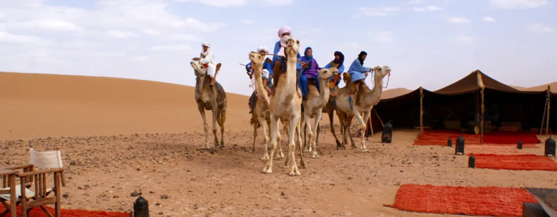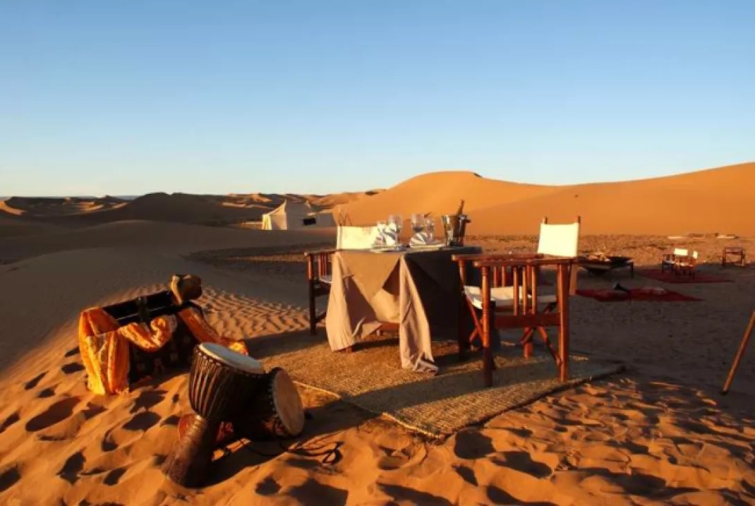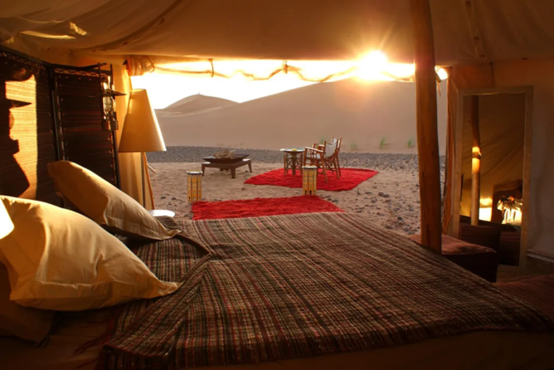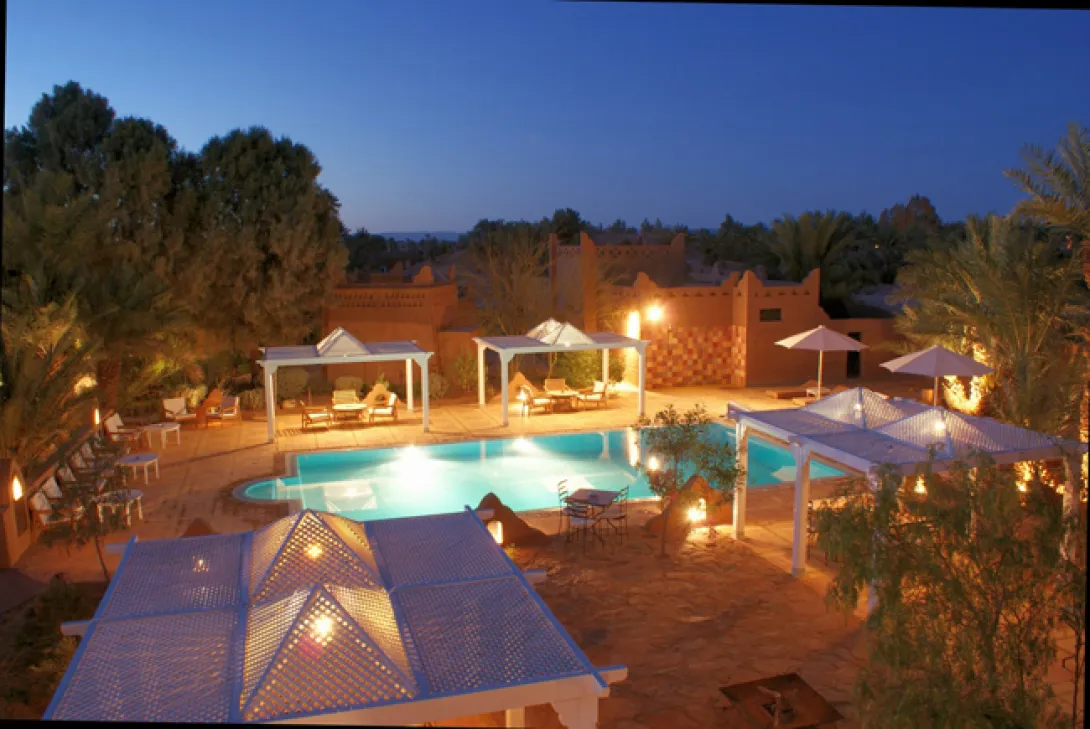 Dar Azawad, M"hamidNo meio do palmeiral e a apenas 400 metros das primeiras dunas, Vincent Jaquet criou o Dar Azawad na mais pura tradição marroquina do vale do Draa.Instalado em M"hamid el Ghrizlane, a última aldeia do sul marroquino, Dar Azawad fica onde acaba a estrada para dar lugar às grandes dunas do Sahara, a 80 quilómetros de Zagora e a 250 de Ouarzazate.Ali, todas as suites e quartos são decorados individualmente.Suite du Sultan Dois grandes terraços com jacuzzi privado. No interior um grande salão. Fragrâncias requintadas e decoração tipicamente africana numa explosão de luxo.Cama king size, edredão em fibra de bambú, climatização, mini-bar, cofre, televisão, CD e DVD, iPod, telefone e rede wireless, máquina de café Nespresso, chaleira com chás Tchaba, taça com frutos frescos e secos, águas minerais (Badoit, Perrier, Evian, Vittel, San Pellegrino...)Duches duplos e produtos Les sens de Marrakech e Afrikissim, beurre de karité 100% bio e acesso ao hammam. Três suites Sahariennes, cada uma com terraço privado e espaço de descanso.Duas suites des Dunes, ideias para famílias. Espaçosas, funcionais, apresentam uma decoração particular: tadelakt, zéliges, Sabra, bejmat e belos tectos em tataouine.O restaurant do Dar Azawad é dirigido por Vincent Jaquet e é com paixão que ali se harmoniza a cozinha marroquina e francesa.Após ter frequentado a escola hoteleira de Dijon, Vincent ganhou experiência em Paris, com alguns dos grandes chefs da capital (Joel Robuchon, Chez Laurent, Le Beuavillier, POtel e Chabot...), onde, durante sete anos, adquiriu uma extraordinária experiência de hotelaria e restauração. No Dar Azawad, com o chef HajjHoucine, elaboram receitas com base em produtos frescos. No entanto, para garantir em permanência a qualidade da sua restauração, o Dar Azawad convida regularmente grandes nomes da gastronomia de Marrakech. Assim, o Chef Damien Durand (restaurante le Zing, Marrakech, e anteriormente, chef da cadeia Relais et Châteaux) é agora chef conselheiro.Na pastelaria, Thierry Dieumegarde, do 16 Café em Marrakech, introduz as sobremesas de chocolate Valrhona e os seus macarons e chocolates finos que se encontram nos quartos. Nos gelados, a carta é realizada por Eddie Cassauzus, considerado o melhor ouvrier de França. O hotel Dar Azawad é inteiramente dedicado ao repouso e bem-estar dos hóspedes. O jardim convida a passear e permite encontrar sempre um local agradável.No Verão, após um dia passado sob sol intenso, aceite a oferta de uma limonada gelada tomada no terraço panorâmico; ou um aperitivo ou um vin gris bem fresco, tipicamente marroquino. à maneira do nómadas do deserto, este espaço está decorado com grandes tapetes, almofadas e mesas baixas. à noite, as velas acendem-se para que os hóspedes se deliciem com uma atmosfera única.Todas as manhãs a equipa do hammam-spa organiza exercícios de ginástica aquática na piscina com 72 metros quadrados.Se há uma experiência em Marrocos que deve realmente viver é a o do hammam. E, como tal, o Dar Azawad não poderia deixar de ter um. Lugar de repouso e descontracção, será transportado para um mundo de inigualável tranquilidade.Os bivouacs no deserto de Dar AzawadO Sand, bivouac e campo deluxo nas dunas do deserto.Num fabuloso erg, próximo das dunas de Ch"Gaga,