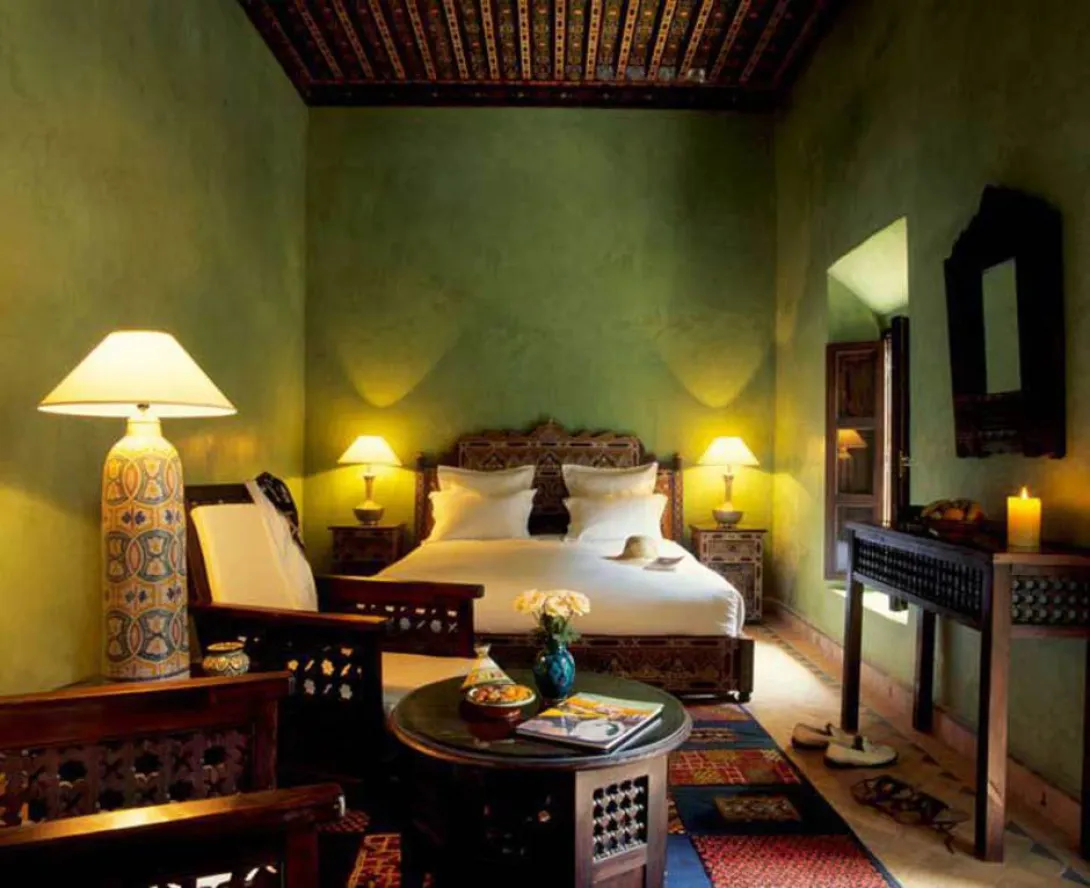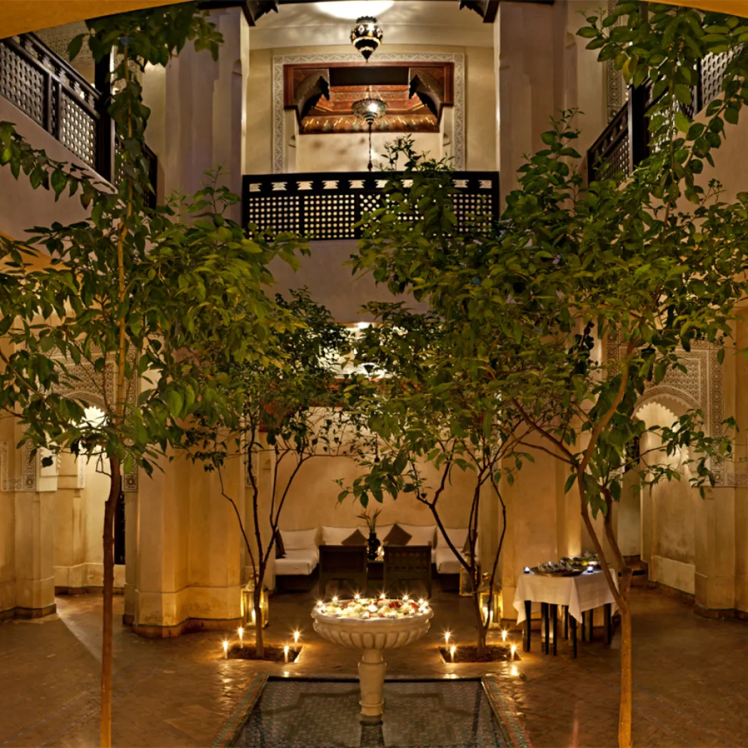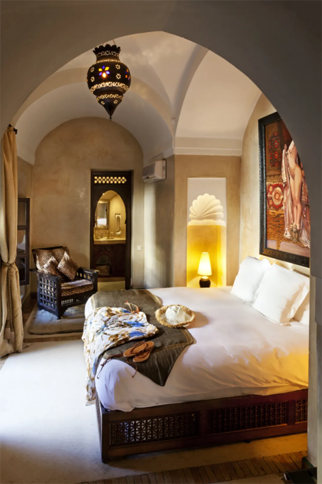 Dar Les Cigognes, originalmente a casa de um mercador construída em 1600, é um pequeno riad instalado no coração da medina, e a sua reconstrução é fruto da estreita colaboração entre os proprietários e o arquitecto tunisino Charles Boccara, um dos grandes nomes do mundo marroquino da decoração. A alquimia produzida entre o hedonismo de um artista, os proprietários, o bom gosto e uma imaginação fértil, resultou num perfeito boutique hotel. Não é nem inimaginavelmente minimalista como tantos hotéis contemporâneos, nem desnecessariamente opulento, como é a tentação de alguns riads.No edifício principal, o andar térreo abriga uma cozinha, sala de jantar, biblioteca, sala de estar e duas amplas alcovas. No andar superior, no primeiro edifício, estão situados os cinco quartos, todos diferentes, cada um pensado para reflectir um aspecto distinto da tradição artística mourisca. O segundo riad, do outro lado da rua, está ligado por uma pequena ponte coberta, onde os hóspedes podem encontrar uma boutique que vende produtos de beleza e acessórios marroquinos. Dispõe ainda de uma sala de massagens, um hammam, uma ampla área de estar e de mais seis quartos dispostos em redor de um pátio com uma fonte e algumas palmeiras. O restaurante serve especialidades locais, como tanjiia de borrego e é famoso pelas suas cooking lessons. Ligando as duas casas, um roof garden de onde se podem ver as cegonhas que dão o nome ao riad, e que instalam os seus ninhos nos muros do palácio real, em frente.