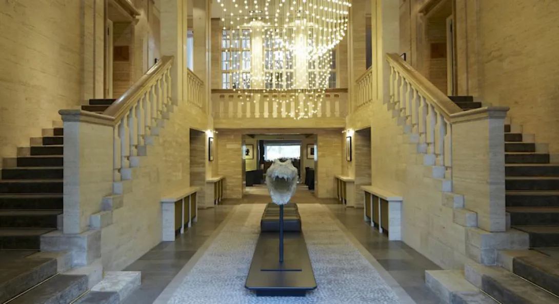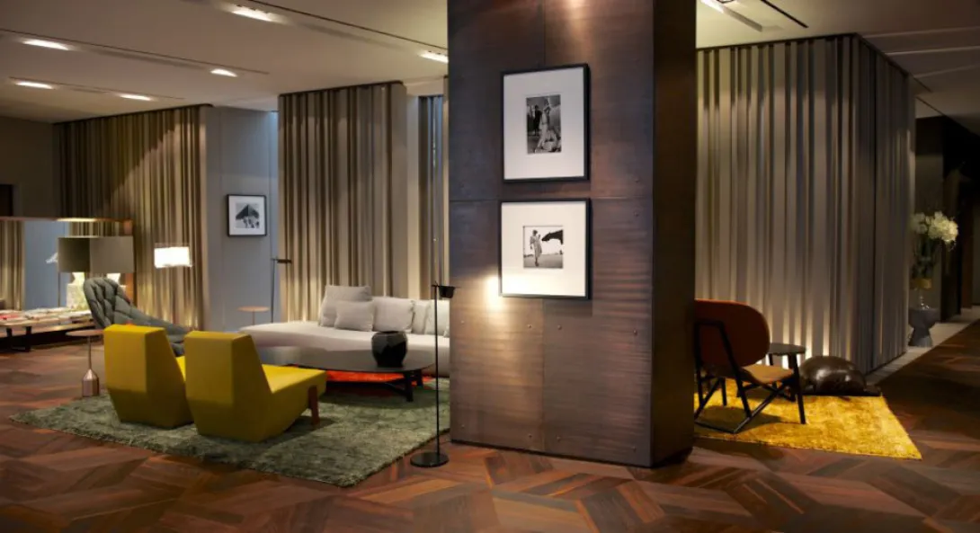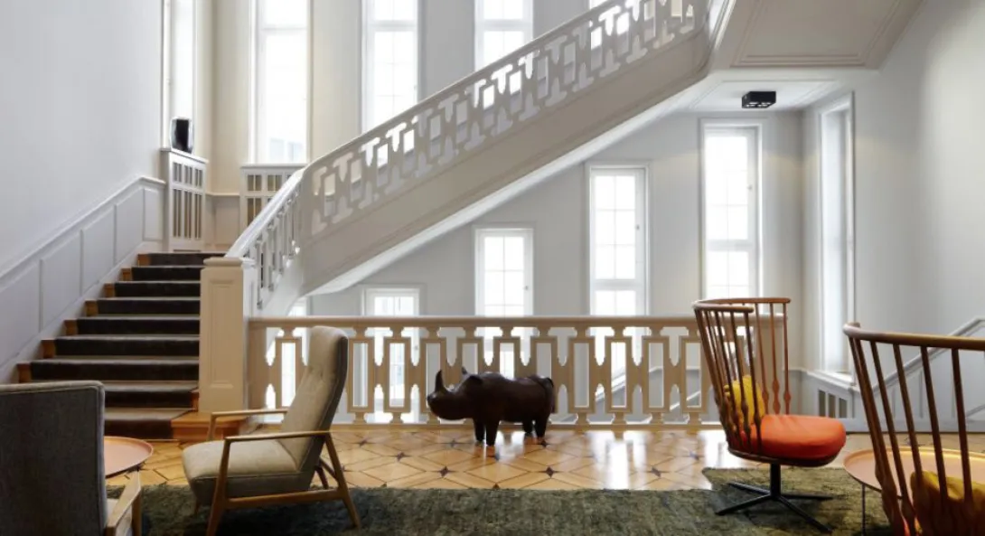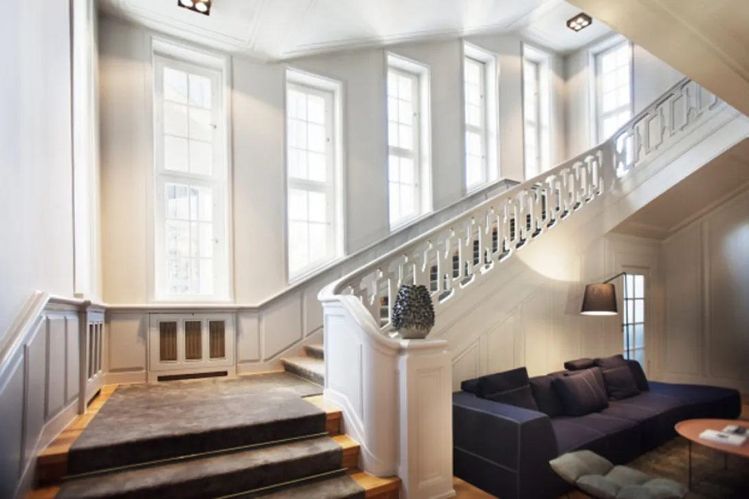Ocupando um edifício que abrigava originalmente a Embaixada da Dinamarca em Berlim, o património único do Das Stue está reflectido no seu nome, que significa em dinamarquês "sala de estar".O hotel incorpora a proeminência da sua fachada classicista e a beleza natural da sua frondosa localização, Tiergarten, antiga zona de caça real da cidade. Não muito longe da Neue Nationalgalerie, da Berlin Philharmonie, de Potsdamer Platz, e de Kurfürstendamm (um imenso shopping boulevard), Das Stue está de facto localizado num cenário idílico exaltando história, romantismo, natureza e cultura cosmopolita.Os proprietários criaram ali um sofisticado urban retreat com conforto personalizadao - à semelhança de uma sala de estar de alguém bem relacionado em Berlim e com imediato acesso às inúmeras atracções da cidade. Enquanto a equipa da Axthelm Architekten revitalizou este histórico edifíico e integrou uma extensão moderna, o design interior e a direcção artística dos espaços públicos foi realizado por Patricia Urquiola, a aclamada arquitecta e designer espanhola reconhecida pelo seu design confortável e elegante. Os 80 quartos foram concebidos pelo LVG Arquitectura S.L.P. com base nas sugestões de Patricia, muitos dos quais com vista para os terrenos vizinhos do Zoológico de Berlim e da sua exótica fauna. Alguns têm tectos altos, portas e varandas interligadas, anexos ou terraços, enquanto outros oferecem banheiras "orgânicas".O estrelado chef catalão Paco Pérez é o cérebro por detrás do "5 - Culinary Art by Paco Pérez", o food concept do Das Stue, e que serve cozinha mediterrânica avant-garde combinada com toques locais nos restaurantes do hotel. O bar, por seu lado, nasceu da ideia de um dos empresários de diversão nocturna mais criativos de Berlim.