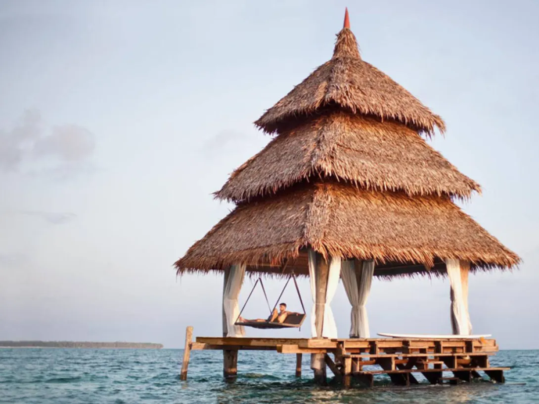 Dedon é exactamente o que deve ser: uma ilha no verdadeiro sentido da palavra. Mas é uma ilha que fica numa ilha - na belíssima Siargao, com a sua típica forma de lágrima, 500 milhas a sudeste de Manila.Bobby Dekeyser, o ex guarda redes do Bayern de Munique e fundador de mobiliário de exterior Dedon, comprou o lugar há dois anos a um advogado francês.Tem nove fantásticas cabanas, cinco das quais acabadas de construir pelo designer Jean-Marie Massaud - abertas à natureza e com tecnologia suficientemente escondido para tornar a sua barefoot experience verdadeiramente confortável.As amenities do resort são fantásticas, o projecto arquitectónico incrível, mobiliário ao ar livre e o ambiente tropical exuberante, areia em pó... um paraíso!O lugar é ainda quase desconhecido; os locais secam o arroz em pilhas ao lado da estrada e vivem em coloridas micro-casas feitas de folhas de palmeira. Mas o asfalto já começa a aparecer...