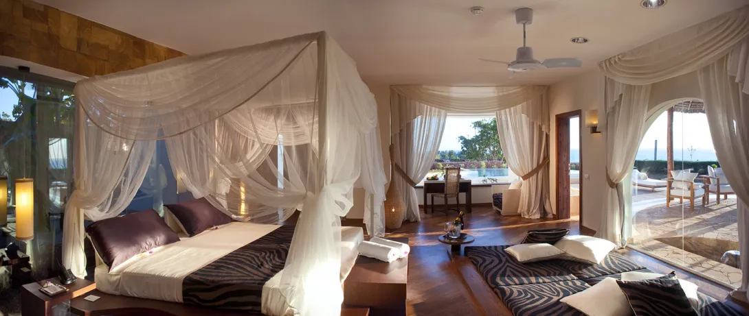 As villas têm os nomes de onze dos diamantes mais preciosos do mundo para combinar com a arquitectura de estilo africano moderna e contemporânea. Cada villa vem com a sua própria pequena piscina, um terraço, um pátio Makuti coberto e um grande jardim tropical para desfrutar de privacidade total com vistas supremas sobre o Oceano Índico e o famoso pôr-do-sol de Zanzibar.