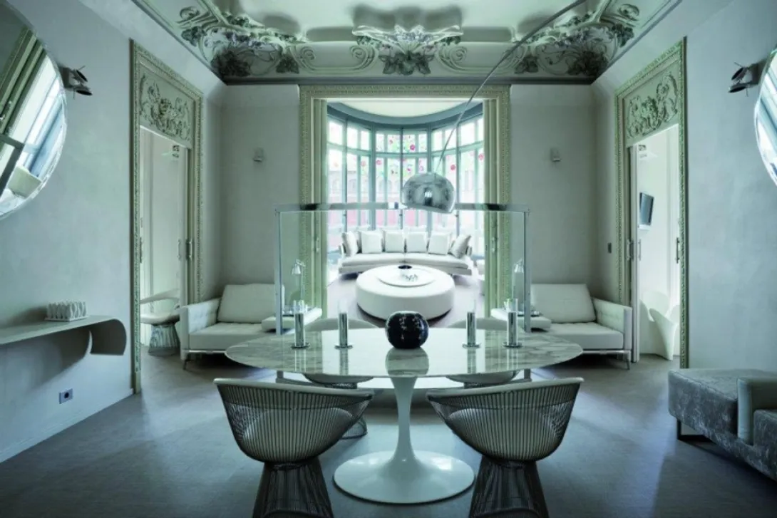 El Palauet Living Barcelona fica no Passeig de Gràcia, uma das avenidas mais brilhantes de Barcelona. Com apenas seis suites (todas com dois quartos), o hotel recebe um número suficiente de estadias prolongadas para poder estabelecer o seu preço por semana. Mas esse é mais ou menos o tempo que gasta a fazer compras no Passeig de Gràcia; e, de qualquer maneira, é difícil passear em Barcelona pela primeira vez e não querer perguntar-se se é possível estender a sua estadia.O visual hotel é cativante, uma combinação ousada das arquitecturas barroca e moderna que resulta em espaços com aparência teatral e aconchegante. O lobby em si vale a visita e deixa muitos hotéis maiores "envergonhados". Em alguns boutique hotels ostentosos, a decoração é superficial, mas aqui os móveis de alta qualidade e a construção sólida garantem que os interiores sejam tão funcionais quanto bem estruturados. A magia da alta tecnologia trabalha com tranquilidade nos bastidores: sob tectos com adornos floridos de época, incríveis painéis centrais de controlo dos quartos.Cada suíte tem dois quartos onde quatro pessoas podem dormir confortavelmente. O resto do dia também não é assim tão difícil - cada uma tem o seu próprio mordomo (ali chamado de assistente pessoal) capaz de organizar e satisfazer qualquer desejo, até mesmo o de um simples cocktail. Depois, cozinhas completamente equipadas, salas de jantar e estar e varandas - ou terraços, em alguns casos - com vistas para o Passeig de Gràcia, o Mosteiro de Montserrat e o Tibidabo.Apesar de não ter restaurante, o hotel oferece um spa com sauna finlandesa e instalações para massagem.