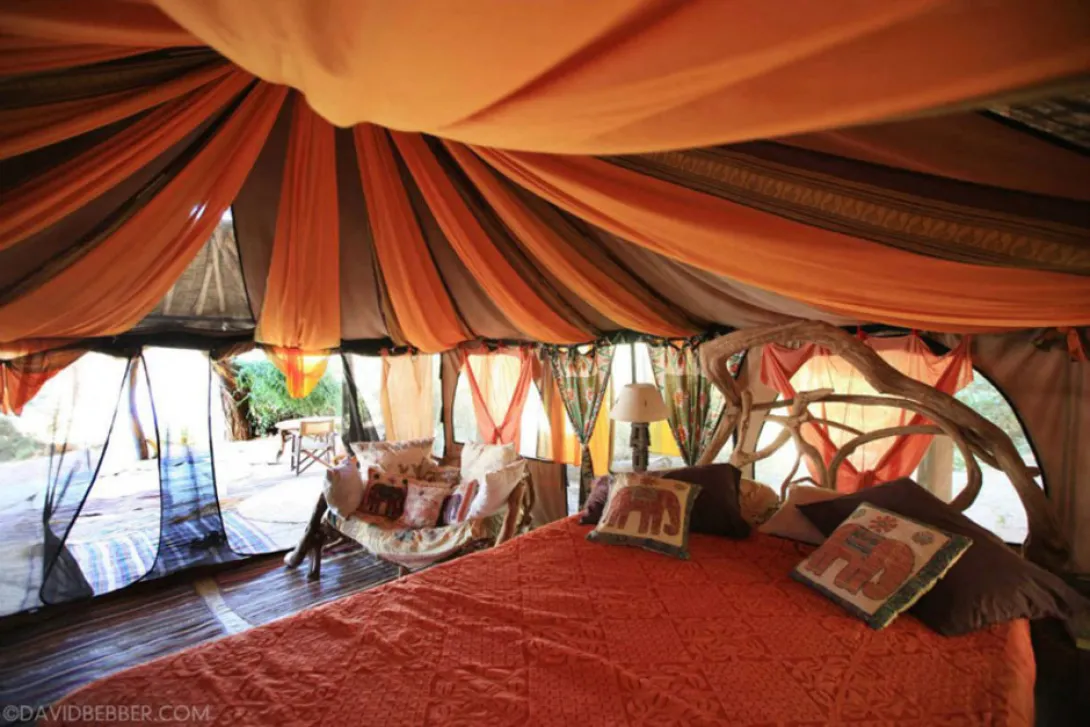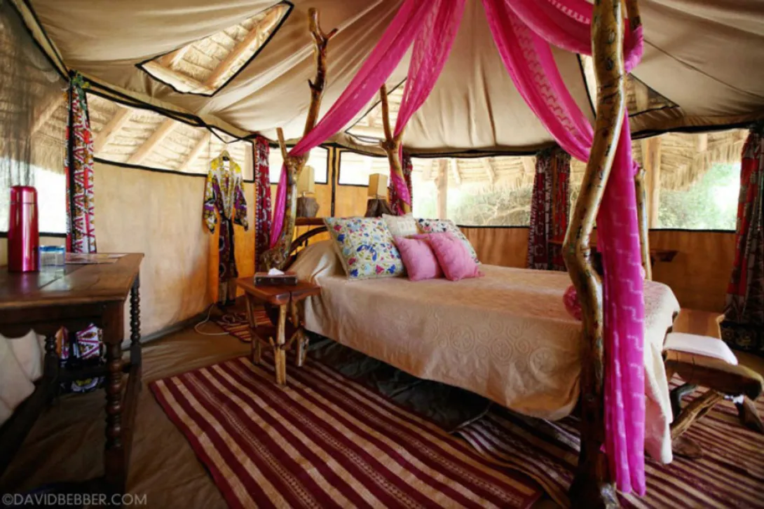 Este exótico acampamento está instalado nas margens arenosas do rio Ewaso Ngiro, e protegido por uma ampla extensão de kigelias africanas e acácias.é o lar de alguns dos maiores elefantes de Samburu, que muitas vezes podem ser visto no rio, descansando sob uma acácia ou roendo vagens ao lado das tendas.As seis tendas exclusivas foram especialmente projectadas para a máxima frescura, privacidade e protecção. Cada tenda está instalada sob um amplo telhado de palha e tem a sua própria varanda. As casas de banho tem abundância de ar fresco e água aquecida pelo sol. A roupa é lavada à mão e passada diariamente com um ferro aquecido a carvão.Elephant Watch dispõe também de luxuosos sofás e cadeirões com confortáveis almofadas, construídos a partir de ramos de acácia torcidos e recolhidos de árvores derrubadas pelos elefantes. Da cozinha saem aromas a ervas frescas em deliciosos grelhados. Tudo no Elephant Watch é simples porque o objectivo do lodge é tornar as estadias o mais confortável possível, divertidas e tão livres de stress quanto possível.O lodge tem guias especializados que recebem os convidados no aeródromo, transportando-os depois através da reserva, conhecendo muitas das famílias de elefantes da reserva, e apresentando-os como bons amigos!Um elaborado piquenique é servido no rio bem próximo dos elefantes e, quase sempre, os hóspedes chegam ao acampamento e são recebidos por guerreiros Samburu que oferecem bebidas frescas e acompanham depois os hóspedes até às enormes tendas decoradas com faixas de cores vivas flutuando ao vento.