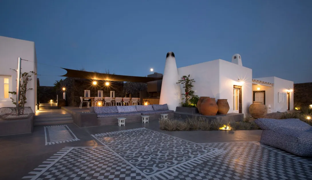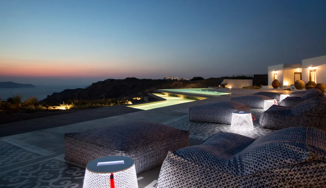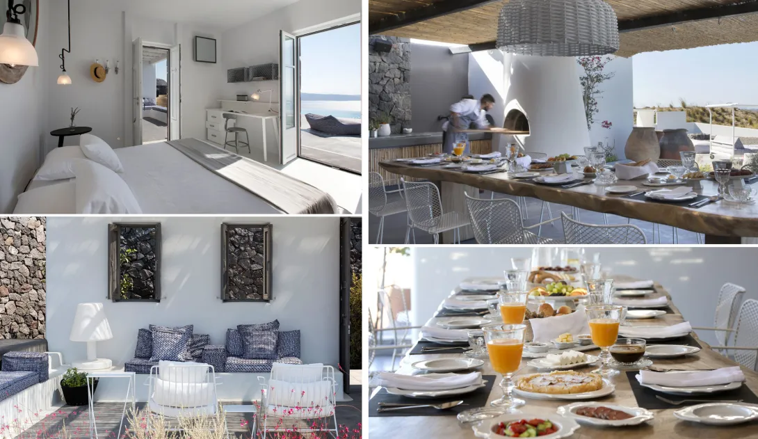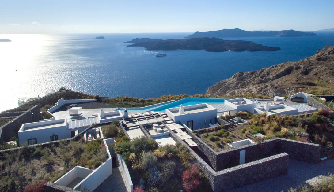 A fantasia é uma realidade na EROSANTORINI e uma feliz imersão no melhor da vida na ilha do Egeu, ao mesmo tempo generosamente quente e requintadamente simples. EROSANTORINI representa o melhor de todos os mundos- combina os elementos mais desejáveis de um resort de luxo com uma villa privada exclusiva ou a casa acolhedora de um amigo. O resultado é uma experiência de férias verdadeiramente significativa e inesquecível, como nenhuma que você tenha conhecido antes. É um local para uma experiência além da imaginação, e perfeito para uma lua de mel ou uma férias bem românticas.