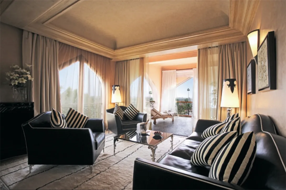 Instalado num belíssimo cenário de jardins exóticos, o Es Saadi Palace está rodeado por luxuriantes buganvílias e palmeiras, laranjeiras e limoeiros. Propriedade da família Bauchet Bouhlal, a sua história começa quando Jean Bauchet lança a primeira pedra do que é hoje o hotel Es Saadi (que significa "o feliz"), dois anos após a criação do Casino de Marrakech, em 1952. Nascido em Arras (França), era um empresário do entretenimento e detinha o Moulin Rouge, do Casino de Paris e do Tabarin, dirigiu o Theatre du Chatelet e criou o Casino de Beirute. Nos anos 50, os bem sucedidos europeus chegavam a Marrakech para passar os meses de Inverno ao sol. Entre eles, o costureiro Pierre Balmain, a princesa Margarida de Inglaterra, os Rolling Stones, magnatas e estrelas do que ainda não era definido como "show business."Inaugurado em 1966, o hotel Es Saadi rapidamente se tornou no refúgio e oásis para os que preferiam uma elegância discreta. Elisabeth Bauchet-Bouhlal, filha do fundador, recebe os hóspedes e assegura-se pessoalmente do seu bem-estar. Desde os anos 60 que ela dirige este negócio da família (o seu filho, Jean-Alexandre Bauchet-Bouhlal, é hoje o Director-Geral Adjunto e a sua mulher, Caroline, além de Directora do Spa acumula a Direcção de Marketing). Ao longo dos anos desenvolveu o resort para melhor responder às necessidades dos clientes e adaptá-lo ao século XXI. Os hóspedes são recebidos no Es Saadi Palace num impressionante lobby, com uma cúpula de 17 metros de altura. A luxuriante arquitectura palaciana reflecte a antiga cultura Oriental.O resort oferece 92 Palace Suites, 10 Villas e 8 Ksars. Cada uma destas típicas "casas" de Marrakech são únicas e concebidas com cores harmoniosas, mobiliário, tecidos, tapetes e portas em madeira trabalhada ou pintada.Na gastronomia, Es Saadi Palaceutiliza apenas produtos frescos e locais. A maioria dos vegetais e frutas crescem na quinta da família, no Vale de Ourika. Todas as compotas e geleias são feitas com frutas dos pomares da propriedade, e o pão, pastelaria e chocolates são também homemade.As toalhas de mesa são bordadas com minúsculas estrelas de prata e os talheres têm gravado o símbolo do Es Saadi, uma palmeira. Tudo isto é parte das mil e uma maneiras que o resort encontrou para oferecer uma experiência de jantar elegante em Marrakech.O Lagon e Jardin Brasserie, com a sua cozinha aberta, oferece cozinha internacional e mediterrânica num décor contemporâneo e com um belo terraço próximo aos jardins e à piscina.La Cour des Lions, outro restaurante, oferece o melhor da cozinha marroquina no topo do Palace, com um design único inspirado no palácio de Alhambra. O chef propõe uma criativa aproximação a esta riquíssima gastronomia, com toques de sabor que dão aos seus pratos uma agradável originalidade.
