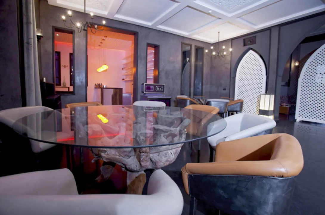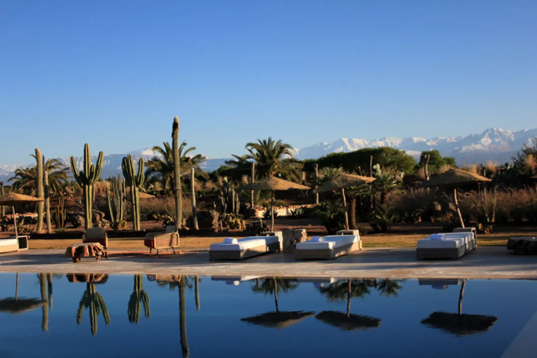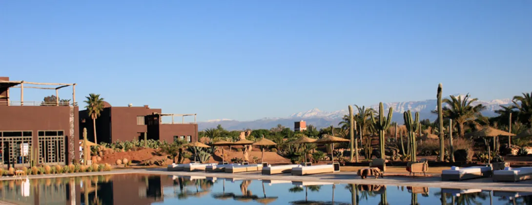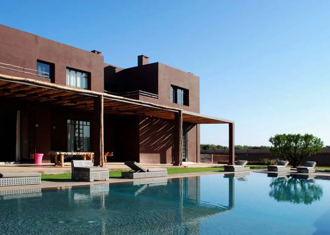 Fellah Hôtel junta em pouco mais de 11 hectares de terras agrícolas dez villas de cor de chocolate com 850 metros quadrados cada, 69 quartos entre os quais sete suites, integrando, desde a sua abertura em Dezembro de 2011, a cadeia hoteleira, Small Luxury Hotel of the World.A escolha dos materiais de decoração interior, bem como do paisagismo, são feitas de modo a homenagear o património rural marroquino.Nos imensos canteiros que circundam as villas e todas as instalações do hotel, as flores misturam-se com um sem fim de tipos de alfaces, de menta e outras plantas que seguem directas para a cozinha do restaurante, assim como outras tantas ervas aromáticas que inebriam os pratos. Os cactos, de diversos tamanhos e feitios, são como que a imagem de marca na paisagem: o seu verde contrasta graciosamente com a cor chocolate dos edifícios, emoldurados ao fundo pelas montanhas do Atlas.A decoração do hotel foi feita pela proprietária, Madame Houria. Todos os quartos (69, dos quais 7 são suites)são diferentes. Cada um é uma expressão artística e elegante da vida contemporânea, com design individual notável completado por obras de arte modernas. As camas são super confortáveis, com lençóis de algodão egípcio.A maioria do staff do hotel é local e formado no Fellah.à disposição de quem por ali se instala existe um restaurante que mistura técnicas culinárias de vanguarda com base em produtos frescos das proximidades sob o comando do Chef Olivier Dechaise. Olivier Dechaise compõe para o Fellah uma cozinha inovadora, combinando produtos regionais locais com novas técnicas culinárias (fuão molecular). Para os interessados, o Chef Olivier Dechaise orienta curso de cozinha no hotel.Uma imensa piscina (aquecida nos meses de inverno), faz as delícias de quem por ali se instala, convidando à suave indolência de um doce fazer nada.O Salon Mahler, o club do hotel Fellah, tem todas as semanas actividades, como a exibição de filmes (terças-feiras), jantares (quintas-feiras), ou discussões temáticas e pista de dança (sextas-feiras e sábados) animadas por um Dj.O Spa do Fellah também prima pela originalidade, inaugurando um centro de massagens tradicionais tailandesas Wat Po, em que todas as terapeutas são oriundas da Tailândia.Wat Phra Chetuphon, ou "Wat Po", é conhecido como o Templo do Buda reclinado de Bangkok é a primeira universidade "aberta" da Tailândia. Wat Po tornou-se no centro das artes thai e do saber, divulgando os conhecimentos ancestrais da medicina tradicional tailandesa e da massagem, bem como da medicação à base de ervas, o diagnóstico e o tratamento para mal estares gerais.Como base da medicina tailandesa, Thai Wat Po, Escola Médica Tradicional é a primeira escola de medicina tailandesa com aprovação pelo ministério tailandês da Educação. A escola acolhe um grande número de estudantes tailandeses e estrangeiros para serem formados e diplomados na arte da massagem tailandesa.O centro de massagem Wat Po do Fellah Hotel é único em Marrocos, em áfrica e para a Europa, está aberto para os hóspedes e não hóspedes e funciona também como um centro de formação de massagistas marroquinos e estrangeiros.O Fellah Hotel é ainda mecenas do centro cultural Dar al-Ma"mûn, uma residência de artistas e actividades para-escolares. é a primeira estrutura cultural da áfrica do Norte e