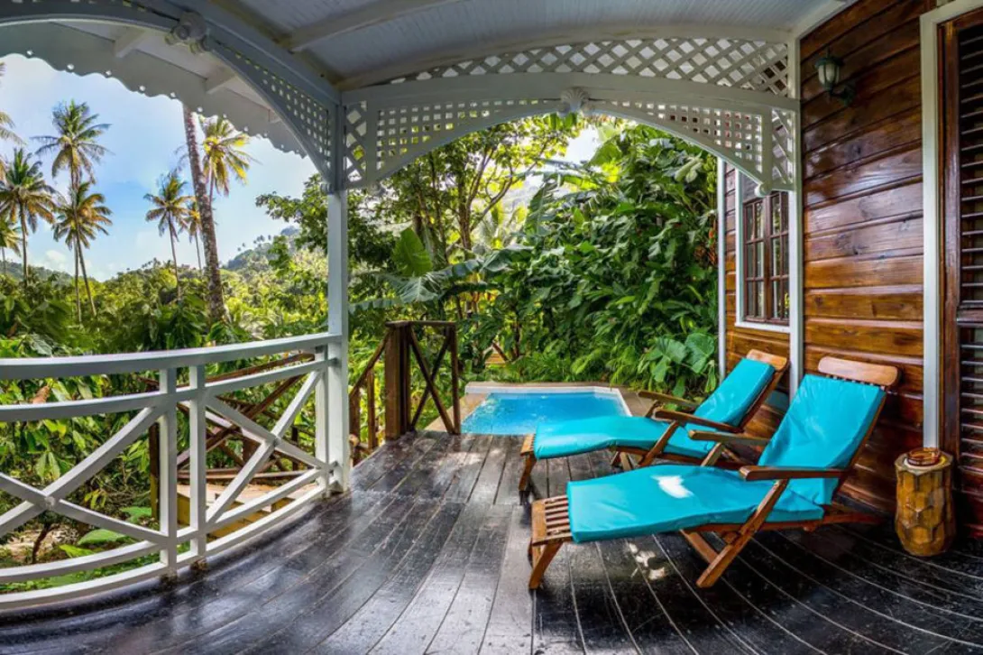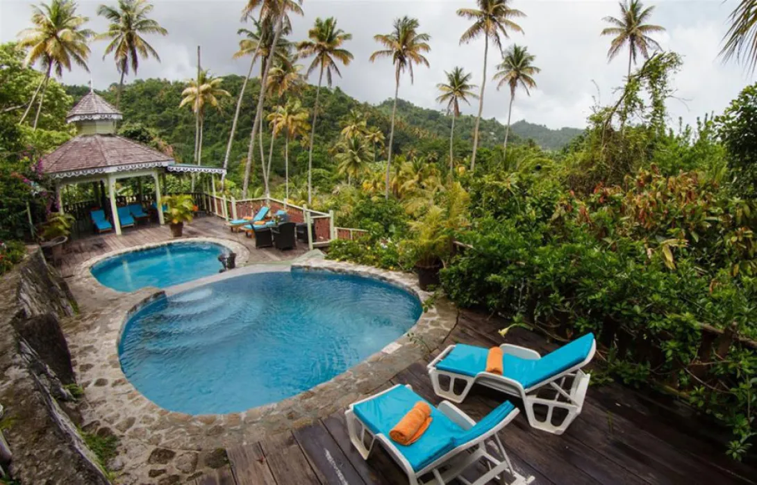 O nome não é apenas um nome: é uma plantação de cacau do século XIX e fazenda orgânica ainda activa, uma cornucópia visual e olfactiva situada no meio de hectares da exuberante selva santaluciense.E apesar de estar perto de muitas das principais atracções turísticas da ilha, não é um típico resort; todos os aspectos, do design à culinária, familiarizam os hóspedes com as tradições vivas da região.Os 15 quartos, instalados em construções autónomas, revelam um ambiente francês-colonial, cada um cuidadosamente restaurado e individualmente equipado com toques de madeira escura e móveis concebidos por artesãos locais.O resultado é um equilíbrio bem conseguido entre a autenticidade do velho mundo com o conforto contemporâneo (amenities Azha, varandas privadas com vista para uma profusão de flora tropical...); alguns incluem cozinhas completas e plunge pools privadas, mas nenhum tem ar-condicionado ou televisão, embora o wi-fi esteja disponível em todo o lado.Mas o apelo intemporal do lugar mais do que compensa a ausência de algumas modernidades tecnológicas: cocktails à beira da piscina, serviço de transporte gratuito até à areia branca da praia de Jalousie, vistas paradisíacas, verdejantes jardins botânicos...O resort dispõe ainda de um spa, o Mamma La Terra Spa, e de dois restaurantes que oferecem uma uma mistura de especialidades franco-caribenho-crioulo e internacionais.