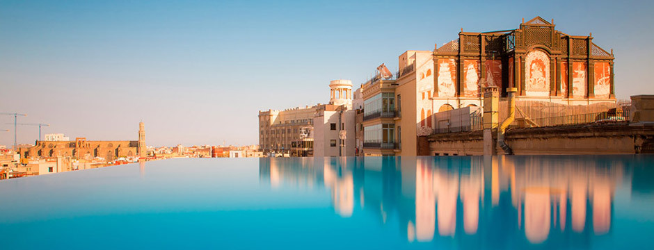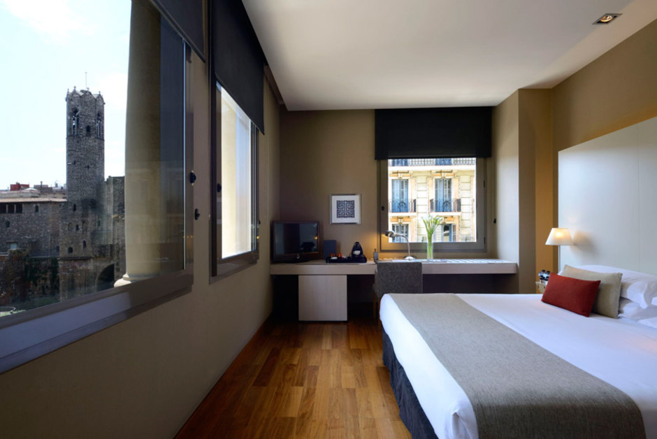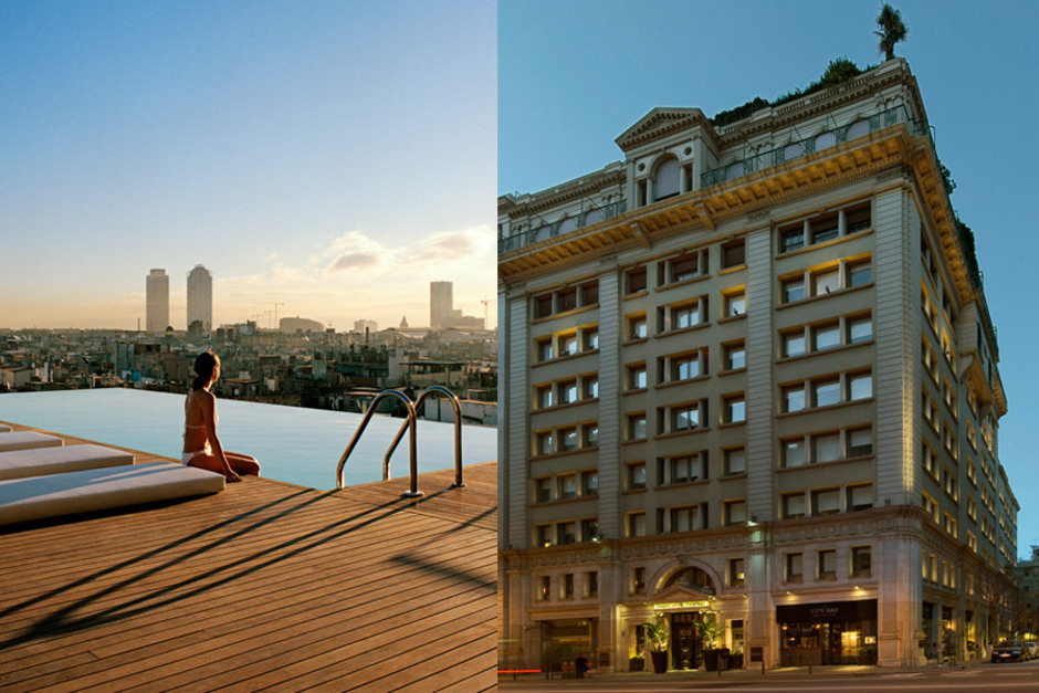 O design minimalista é inconfundível, clean e elegantemente iluminado, colocando-o muito à frente de um vulgar boutique hotel minimalista...Com 147 quartos, o Grand Hotel é espaçoso e moderno, reunindo a magnitude e a eficiência de um hotel de negócios com a textura e cores de um boutique hotel.Tem uma localização privilegiada, próximo da Catedral de Barcelona e do Bairro Gótico, e o Bairro Born, que o circunda, é um verdadeiro reduto de gente jovem e elegante.Por dentro, está bem equipado tanto para negócios quanto para lazer. Os quartos contam com roupa de cama branca e fresca, impecáveis portas de cristal, wi fi free, a comodidade de uma enorme mesa de trabalho, telefone sem fios e eficiente isolamento sonoro.As luxuosas casas de banho incluem espelhos anti-embaciantes e espaçosas banheiras. A grande parte dos quartos é, na verdade, bastante extravagante, tanto os executivos ampliados quanto as suites propriamente ditas, com um pé direito alto e enormes janelas com vista para a catedral.No elegante restaurante do Hotel, o ávalon, os hóspedes podem deliciar-se com cocktails bem preparados e pratos de estilo mediterrânico. A jóia da coroa é a sua exuberante piscina no topo, que proporciona uma vista inigualável dos monumentos antigos de Barcelona.