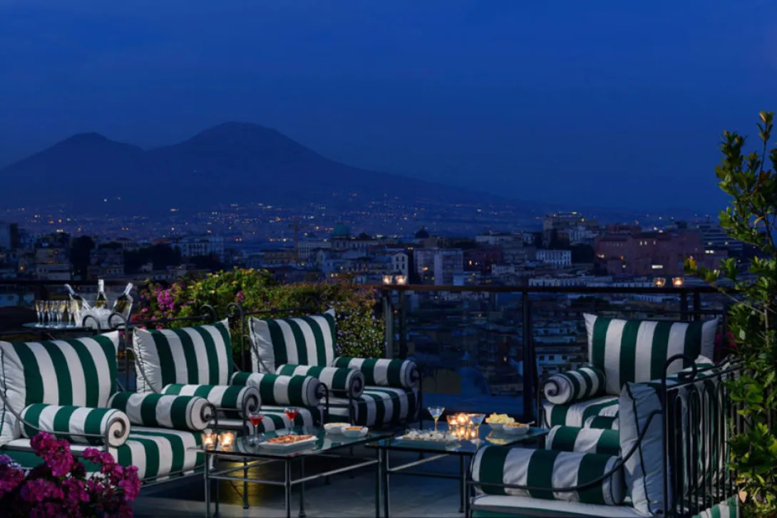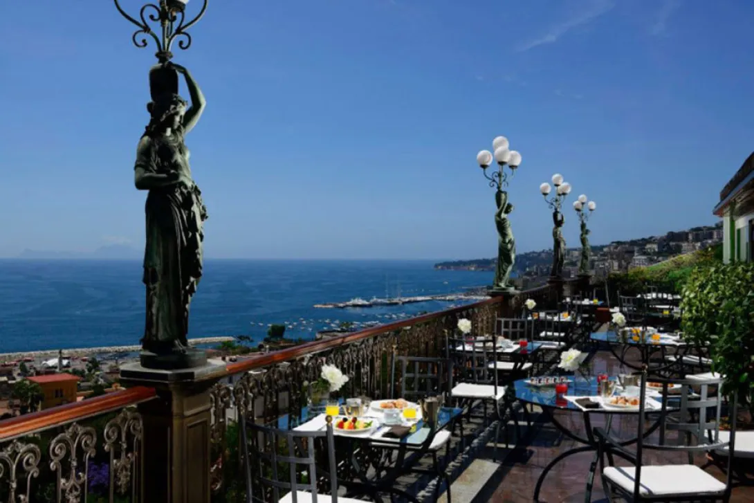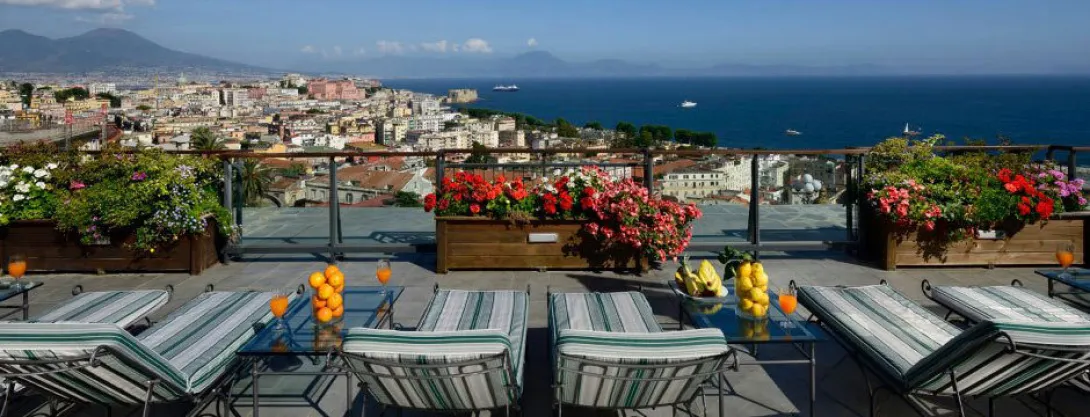 Nápoles é conhecida pela sua caótica urbanidade, mas o Grand Hotel Parker pertence ao outro lado da cidade: o lado em que o rio faz uma suave curva e os tesouros arquitectónicos e as encostas montanhosas se revelam como cadeiras num teatro com vista para o palco azul do Mediterrâneo.Membro dos Small Luxury Hotels, o Grand Hotel Parker tem esta esplêndida vista há mais de um século, empoleirado no Corso Vittorio Emanuele, acima das palmeiras e dos telhados. Os quartos e suites são majestosos e decorados com antiguidades de estilo imperial e muitos têm uma vista deslumbrante do porto à distância. As casas de banho são obras-primas em mármore italiano. Oito suites têm dois andares, quase parecendo apartamentos, perfeitos para visitas mais demoradas. Os espaços públicos são igualmente requintados, mas o melhor está guardado para o fim: os dois terraços - espaços elegantes para absorver as vistas da cidade.Um desses terraços, forrado com postes de ferro de formas femininas, está ligado ao Restaurante George e é ideal ao entardecer com uma refeição bem mediterrânica. Com o mesmo nome do proprietário original do hotel, o ilustre biólogo marinho americano George Parker, o restaurante mantém o património de Parker com magistrais pratos de mariscos. Um bar acolhedor e um spa adequadamente irresistível completam a lista das jóias deste hotel.