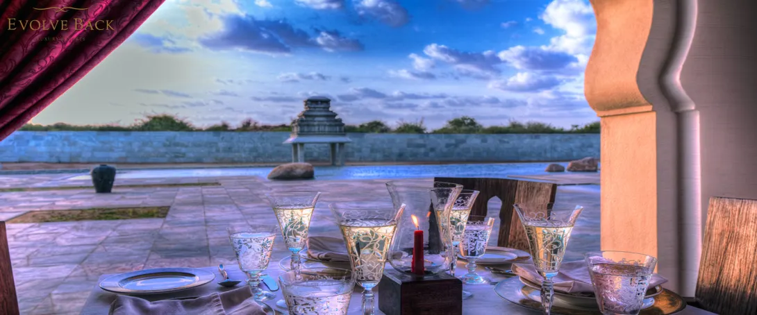 O hotel encontra-se localizado perto das ruínas históricas de Hampi, onde persistem intactos até hoje os melhores exemplos da arquitectura secular Hindu. Foram recriados os palácios do Rayae, com base nas estruturas remanescentes e nas reconstruções de imagem 3D lideradas por um reconhecido arqueólogo.