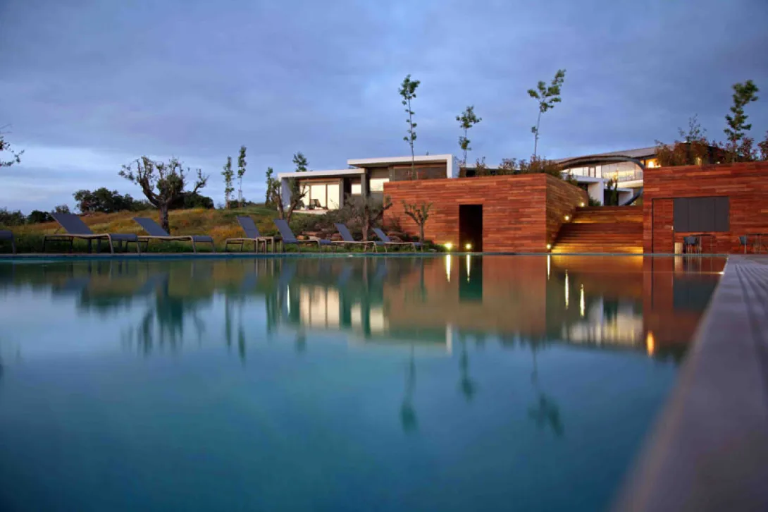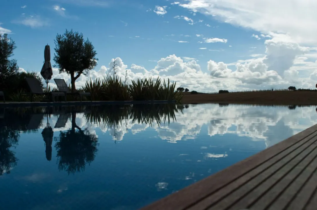 "Vínhamos para cá remar e com o passar do tempo trouxemos Americanos, arquitectos, consultores e auditores.Juntámo-nos com as pessoas de Avis e vieram Dinamarqueses, Noruegueses, Holandeses e....Neo Zelandeses; alguns, depois de por cá passarem, até se tornaram Campeões Olímpicos.As árvores ficaram todas de pé, apenas acrescentámos mais algumas. Ao Andaluz, o nosso Burro, arranjámos-lhe mais um amigo, o Catalão.As perdizes, as lebres e os saca-rabos não fugiram, os javalis vão aparecendo.Estamos contentes por recebê-lo num Alentejo que abraçamos e que consigo queremos partilhar."São estas as palavras que o visitante encontra ao chegar à Herdade da Cortesia, em Avis.Aberta desde Janeiro de 2009, esta Herdade que se encontrava esquecida no coração do Alentejo, nas margens da Barragem do Maranhão, no distrito de Portalegre, apaixonou um grupo de amigos que nada sabia de Hotelaria mas que depressa se identificou com o local e, envolvido num espírito empreendedor, não fez a pergunta "porquê?", mas sim a pergunta "e porque não?"Em Avis, terra de D. João I, a água mistura-se com as árvores, as águias com os javalis e o azeite com o pão e aquele fabuloso vinho Alentejano.São os ingredientes com que a Natureza brindou terras que já foram dos Frades de évora, comenda de Calatrava, mais tarde do Mestre de Avis e que este grupo de jovens decidiu colocar no mapa da geografia actual e mostrar ao Mundo o melhor que o Alentejo e Portugal podem oferecer a qualquer tipo de viajante.Este Hotel de quatro estrelas nasceu com a Natureza e para a respeitar. Por essa razão, a principal preocupação dos Arquitectos Pedro Alte da Veiga e Klauss Gruner foi integrar na paisagem alentejana um espaço moderno, confortável, aberto para o campo e com respeito pelas novas regras de eficiência energética.O resultado destas preocupações foi uma atmosfera altamente orgânica que se espalha pelo terreno e nos transporta para o exterior da Herdade.Os terraços dos quartos são utilizados como zonas de lounge e de bem-estar, o restaurante com uma vista de 180º e a piscina que mergulha e se estende pelo Alentejo, são alguns dos fortes emblemas da Herdade da Cortesia.Na cozinha os produtos e pratos do Alentejo, sempre bem apresentados, são soberanos, mas a ementa contempla também um caril de camarão em cone folhado, um bife do lombo em Bluecheese e outras iguarias que ficam por revelar...O Alentejo comanda também a carta de vinhos, os locais como as Terras D"Alter, Rovisco Garcia, que fornece também o azeite, Fundação Abreu Callado, Herdade Fonte Paredes e Mouchão são as principais escolhas. Os queijos de ovelha de Sousel e os enchidos do Ervedal marcam forte presença em qualquer conversa à lareira ou ao pôr-do-sol.Nos quartos nada foi deixado ao acaso. As camas são King size, os lençóis das camas respeitam o silêncio de uma noite alentejana ao sabor das estrelas e o pequeno-almoço não tem horas.As horas para acordar são as suas e, se por acaso ficou a gozar uma boa manhã de descanso, não tem que ir a correr para o pequeno-almoço porque ele não tem horas. é nesta refeição que o sumo de laranja natural brilha, os iogurtes biológicos e a limonada feita com limões apanhados na véspera juntam-se ao pão de quilo alentejano com doce de abóbora.Durante o dia as opções sã