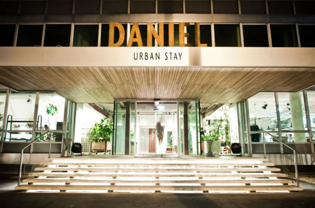 Curto em pompa, longo no estilo, Daniel é a evidência de que os hotéis de Viena começam outra vez a nascer jovens...Muitos dos hotéis de Viena têm filas de luxuosas limousines bem visíveis nas suas entradas... O Hotel Daniel é o único com um atrelado de alumínio estacionado no jardim da frente - mais precisamente um 1952 Airstream, adaptado por um carpinteiro naval para se paracer com qualquer coisa saída de um tema de viagem da Dwell (o Airstream, por sinal, é um quarto habitável, e nada unstylish ou desconfortável). Na verdade o transporte é um tema que é parte integrante da estética do hotel, a partir da escultura de um veleiro de Erwin Wurm com o seu casco torcido pendurado na borda do telhado, às Vespas e bicicletas vintage à espera dos hóspedes para darem um passeio."Pared-down" é, talvez, a melhor maneira de descrever os quartos, embora os seus designers tenham parado a tempo de destruir todo o seu carácter. Há um subtil aspecto industrial nos espaços, com candeeiros pendurados como num escritório open office, o patch ocasional do cimento à vista e uma decidida falta de desordem. Alguns quartos estão equipados com redes ao lado da janela, outros com paredes de vidro temperado, mas todos repletos de luz.Considerando que os quartos pretendem minimizar o barulho e concentrar-se no que é essencial, o hotel tomou algumas liberdades de boas-vindas, por exemplo na padaria; não é de facto uma "padaria" - afinal de contas tem uma área do menu dedicada a vários cortes de carnes, ou bebidas, ou opções de bebidas com cafeína, que vão desde o café turco ao chai com mel da colmeia do telhado. E sim, os assados também são deliciosos e os bolos caloricamente ricos (como convém)...