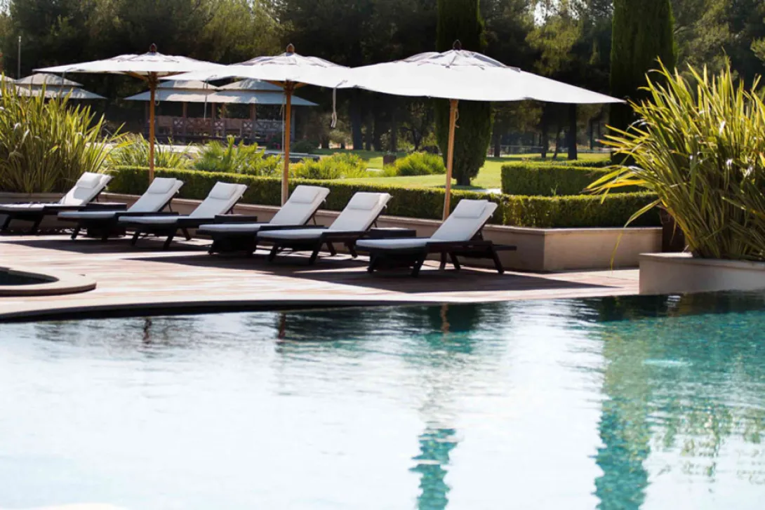 Na orla de uma floresta de pinheiros, com vista para o Golfe d'Amour, o Hotel du Castellet é uma das propriedades mais charmosas da região, com o seu mobiliário requintado, quartos em tons de lavanda, mel ou de uva e ensolarados terraços... Christophe Bacquié impõe o seu estilo no Monte Cristo, o prestigiado restaurante do hotel, com uma cozinha baseada em produtos sazonais, animado por uma sugestão de sabores de outras partes que ganhou nas suas inspiradoras viagens. Para o relaxamento absoluto, o hotel dispõe ainda de piscina, court de tenis, campo de golfe de 6 buracos instalado no meio deste belíssimo parque e que se abre para as montanhas da Provença, um spa Cinq Mondes que oferece, para além de massagens, tratamentos baseados em ancestrais tradições (depois da sua massagem descubra a selecção Tea Forte), e alguns gazebos dispersos pelo jardim que, iluminados à noite, são ideiais para contemplar o céu estrelado.Os 42 quartos e suites do Hotel du Castellet são encantadores e totalmente originais. Os quartos standard no Bastide e nas villas estão todos virados a sul e têm os seus próprios terraços privados com vista para o parque, floresta circundante ou a piscina; os quartos Prestige são um pouco maiores e combinam conforto com luxo clássico; mas, para uma experiência mais moderna e exclusivo reserve a Cannelle Suite (apartamento), que tem a sua própria sala de fitness, hammam e jacuzzi no terraço. A sumptuosa casa de banho está equipada com a mais recente terapia de relaxamento com um espectro de mudança de luzes sob um rain shower.