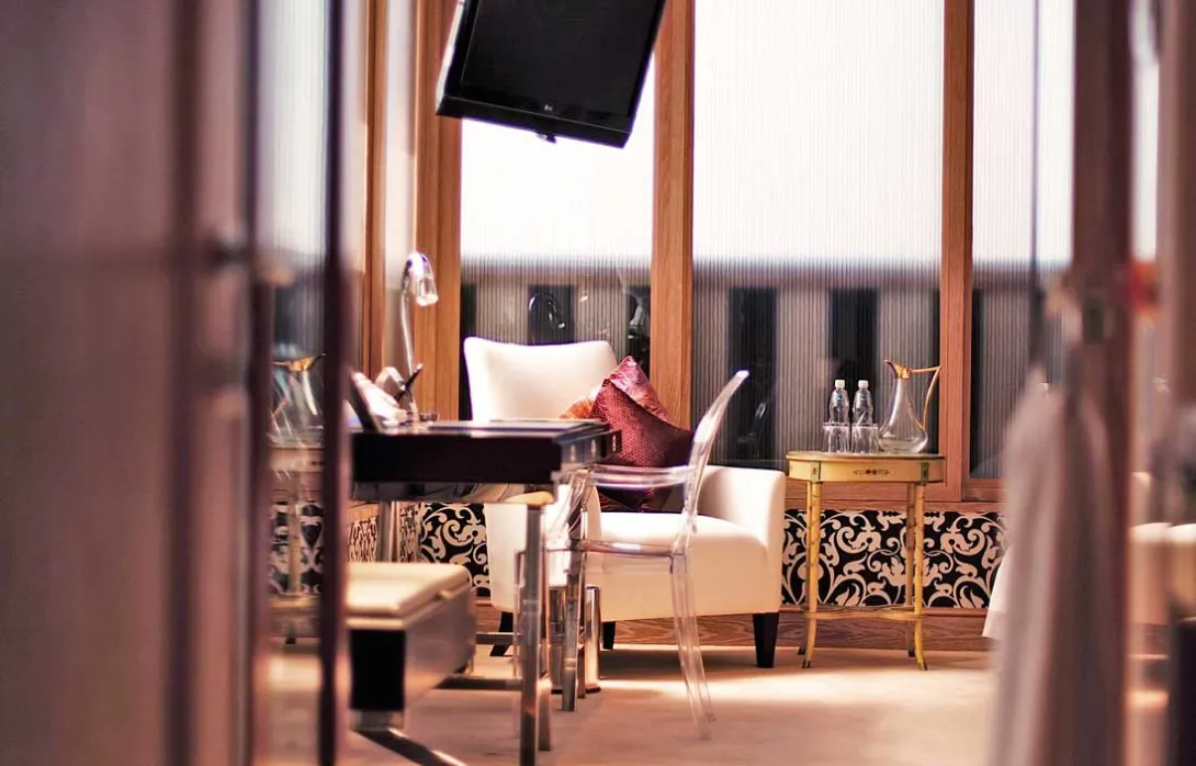 O ambiente sofisticado reflecte-se no mobiliário luxuoso, grandes lustres de vidro e duas impressionantes esculturas de Salvador Dali no lobby – aliás, por todo o hotel estão espalhadas peças de arte originais de artistas contemporâneos, como Jia Gang ou Gao Xiao Wu.