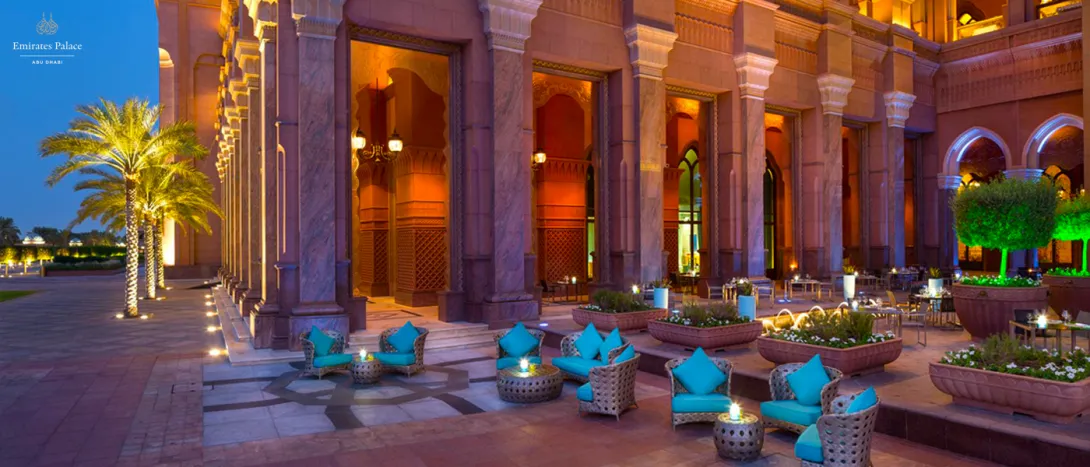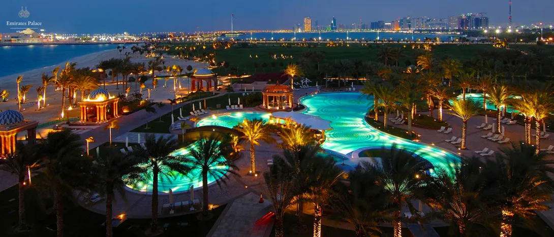 Dispõe de uma praia intocada de 1,3 km, piscinas com palmeiras e uma marina privativa com vista para uma baía natural.O Emirates Palace é perfeito para umas férias únicas ou para eventos e reuniões. É um hotel dos mais inspiradores de Abu Dhabi com um ambiente extraordinário.