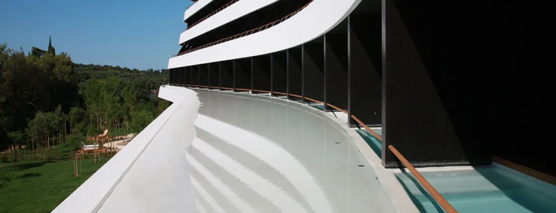 Este novíssimo hotel, primeira propriedade dos Design Hotels na Croácia, é um típico business hotel, se bem que também atrai viajantes e meros turistas.A cinco minutos a pé da praia e a dez da estância balnear adriática de Rovinj, o Lone assemelha-se a um navio de cruzeiro, com o seu edifício branco emergindo do topo dos pinheiros da floresta de Zlatni Rt. Cadeiras nos decks e painéis em madeira nos terraços dos quartos dão-lhe uma vibração própria de resort, e cada um dos seus 253 quartos tem vista para o mar.O interior é arejado e minimalista, com um luminoso átrio central em pedra e sofás angulares. E, mesmo que não esteja ali hospedado em trabalho, não esqueça o fato de banho: existe um spa e três saunas (finlandesa, sueca e salgada).