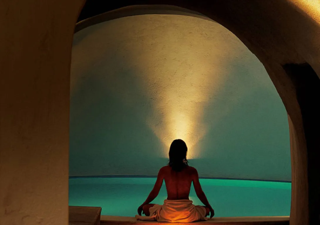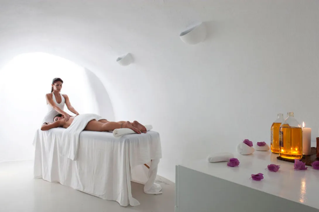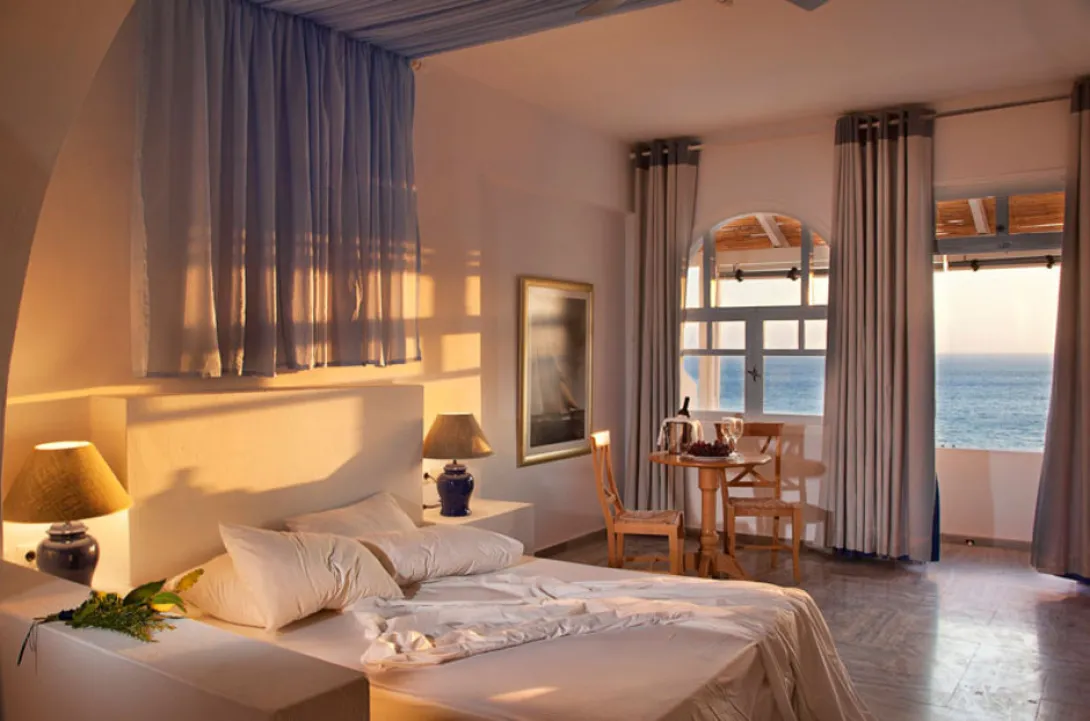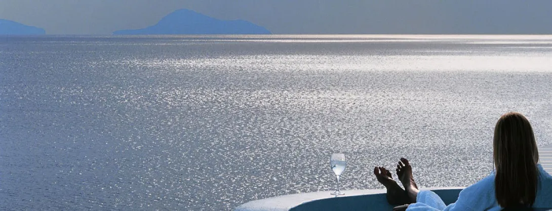 Idílico spa hotel construído nas falésias, Notos Therme e Spa tem vista para a isolada praia de Vlychada e a marina, no sul de Santorini.O spa utiliza as águas quentes vulcânicas enriquecidas que correm através das rochas para tratamentos terapêuticos e relaxantes e oferece uma excelente escolha de terapias thalasso com algas marinhas, lama vulcânica, chocolate ou aromaterapia.Com uma piscina de água de nascente natural, um restaurante, bar de piscina e uma praia nas proximidades, este é o lugar para descansar e relaxar.Maravilhosamente isolados, os 24 quartos e seis suites do Notos Therme e Spa têm espaçosos terraços com vista para o azul cintilante do Mar Egeu.Descontraia com um cocktail à beira da piscina ou passeie pela tranquila praia de Vlychada. Caminhe depois até à marina e, claro, não perca Akrotiri, ruínas arqueológicas de um assentamento Minoico de 1600 AC. De regresso ao hotel, delicie-se no restaurante, exclusivo para os hóspedes do hotel, com soberbas vistas sobre a marina e que oferece uma cozinha mediterrânica e grega, com ênfase em peixes e mariscos.