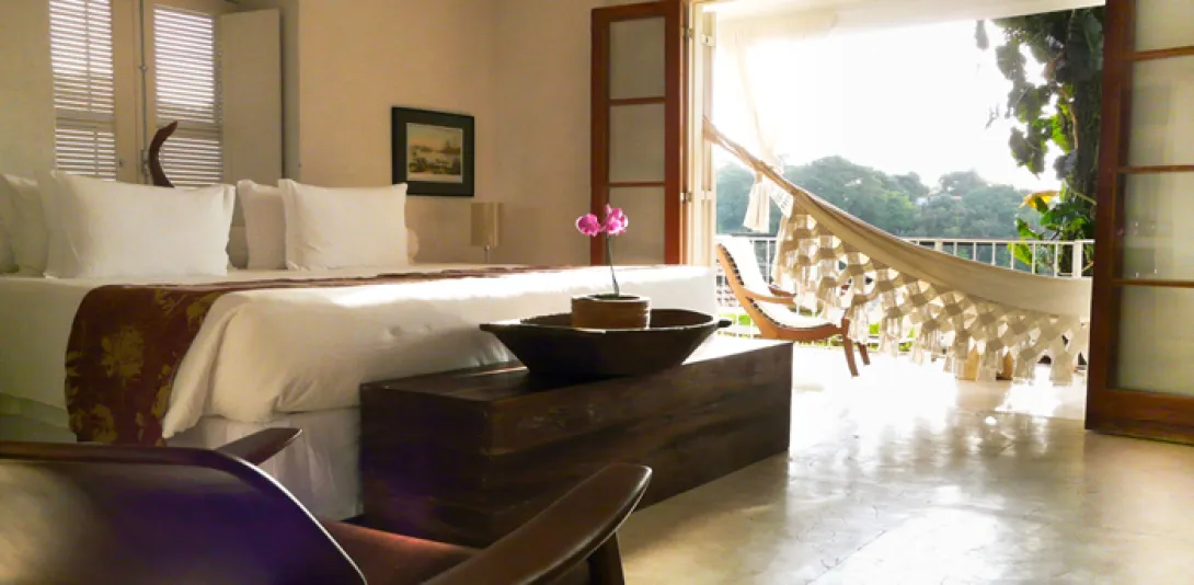 Calmo, sofisticado, luminoso, cada quarto e suíte do Hotel Santa Teresa ofrece um ambiente exclusivo e relaxante. O design de cada quarto e único e luxuoso. Uns com banheira de cimento marmorizado, outros com banheiras desenhadas pela Studio Vitty em Corian, ou ainda com espaço de banhos revestido de ardósia dourada, com pisos de ypê. Maioria das Suítes oferecem uma maravilhosa varanda externa, na sombra do perolado e do jasmim perfumado, para degustar uma Caipirinha de frutas vermelhas, admirando os tucanos e os macacos nas palmeiras. Outros têm vistas lindas e únicas para os jardins, a Baia de Guanabara, a cidade, e, maravilhoso, o por do sol sobre as montanhas da Tijuca. Em cada quarto, as peças de artistas e de fabulosos designers brasileiros, Sérgio Rodrigues, Carassas, Studio Vitty, Zemog, Rock Lane, personalizam o design moderno e natural de cada espaço.Em todos os detalhes, o Design Tropicalpresente nas luzes, nos contrastes, e nos materiais naturais e brutos como algodão cru,linho natural, fibra de coco, de bananeira, de bacaba o de carnaúba, madeiras tropicais.O conforto luxuoso atende aos clientes mais exigentes, com detalhes como a excelente isolação acústica, televisões LCD alta definição, camas super King, lençóis de algodão 300 fil, wifi em todos espaços, ar-condicionado central, room service 24 horas..O Le SPA do hotel Santa Teresa, requinte tropical luxuoso e sofisticado único no Rio de Janeiro, oferece os melhores tratamento de beleza da marca eco amazônica Natura, assim como uma grande variedade de massagens relaxantes e anti stress, para o corpo e a alma.O SPA Natura é o melhor espaço de massagem e beleza do Rio de Janeiro e é um perfeito lugar para relaxar e viver uma experiência inesquecível. Day SPAMassagem tridim