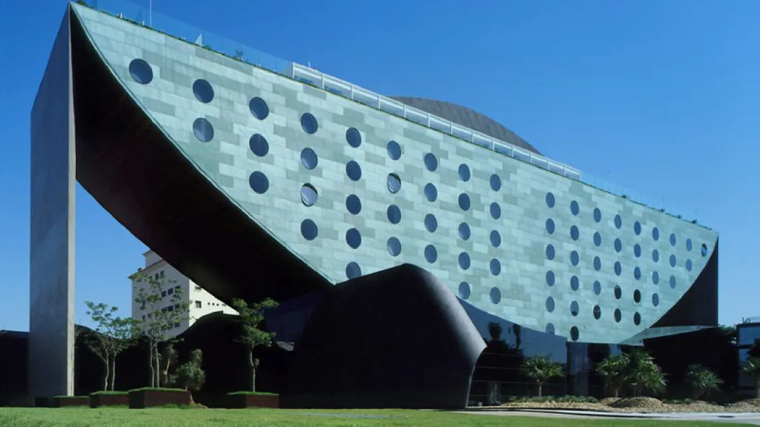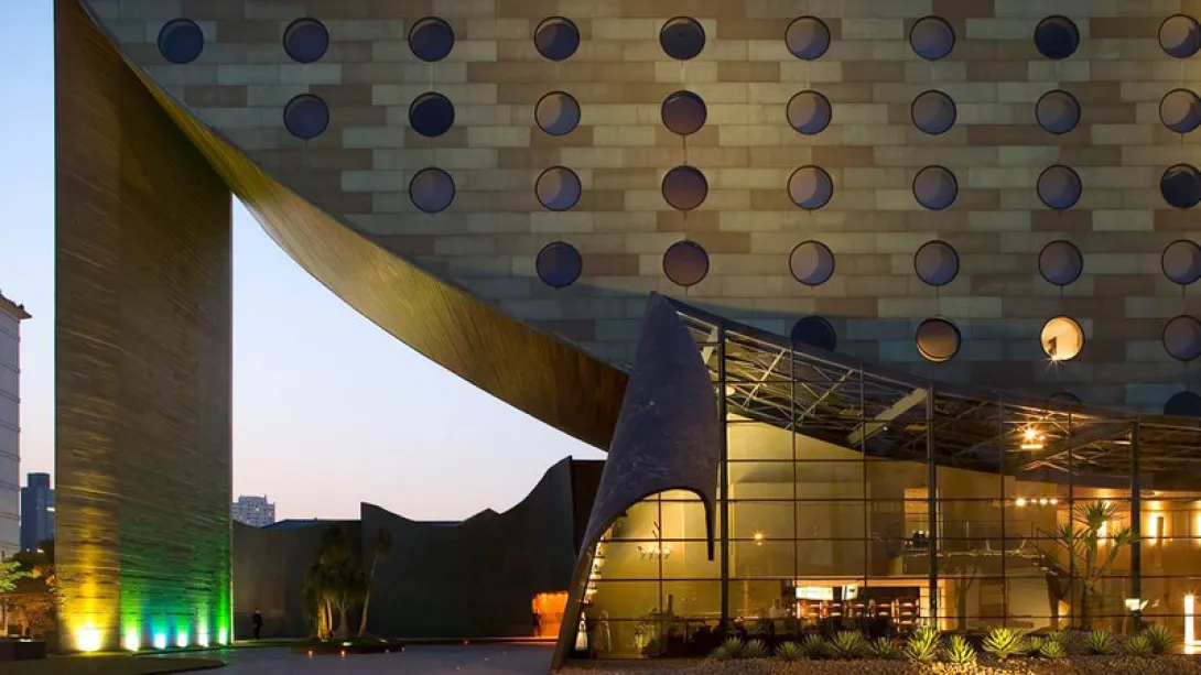 A estrutura é de um dos arquitectos mais famosos do Brasil, Ruy Othake, aluno de Oscar Niemeyer, e tem a forma de um meio-disco, achatado no topo, como uma moeda em equilíbrio, e com a parte de cima cortada. Não é apenas uma silhueta impressionante, mas uma maneira engenhosa de obedecer à restrição de altura do prédio (85 metros) e concentrar a maioria dos quartos e suites perto do "telhado" para conseguir vistas ideais sobre a cidade. Na verdade, há apenas 4 quartos no estreito segundo andar e 30 no andar superior.