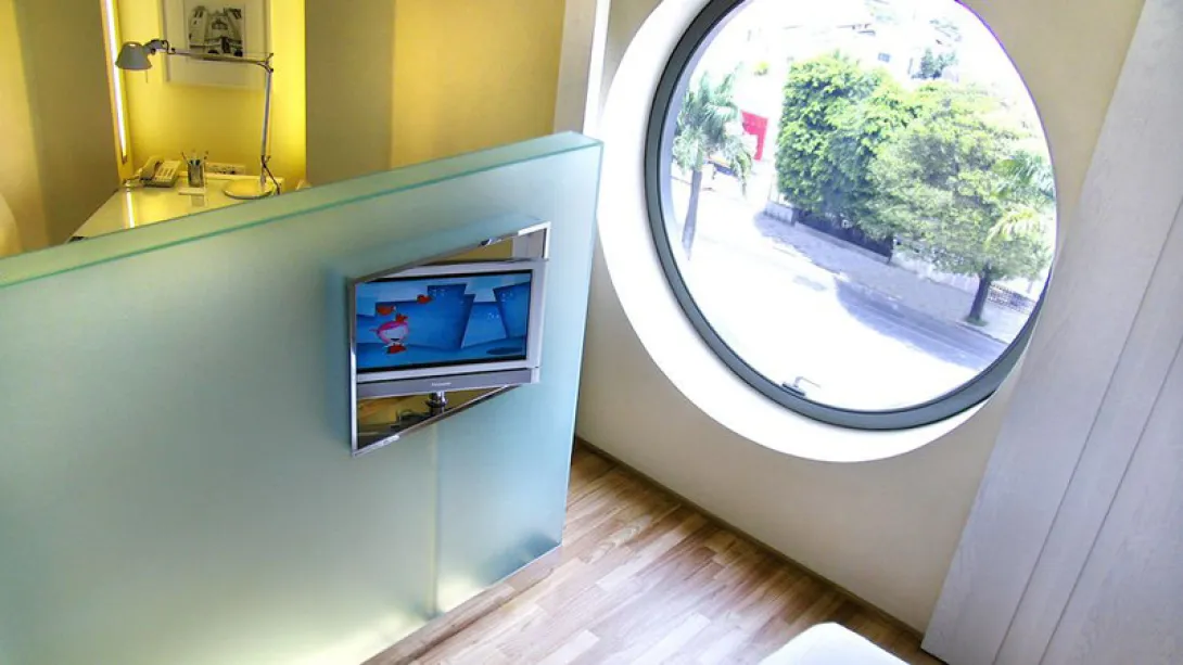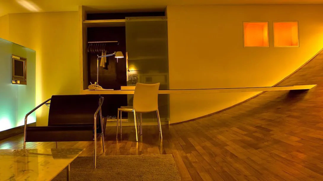 Construído em 2002, é um hotel boutique com uma decoração moderníssima e toques vanguardistas: a recepção tem algumas cadeiras em volta de uma pequena mesa com uma garrafa de champagne gelado.