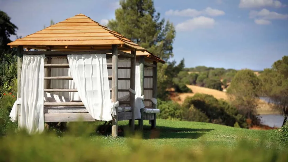 Embora em pleno Alentejo, há algo cosmopolita na atmosfera do hotel: uma suave música chill out enche os espaços exteriores. Sentado no terraço, onde várias espreguiçadeiras, mesas pequenas e camas com dossel esperam os hóspedes, desfruta-se de uma tranquilidade única, completa com um pôr do sol incrível no final do dia.
