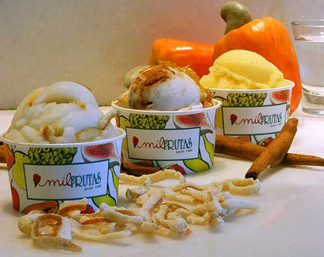 No início de cada Verão a tradicional Mil Frutas acrescenta ao seu menu novos sabores que viram moda!A geladaria mostra que é boa em sabores exóticos e investe em cinco receitas que já nascem hit: rosa com pistaccio e framboesa, laranja da terra com mascarpone, maracujá com capim-santo, marmelo, e limão siciliano com casca de laranja. Alguém ainda vai querer provar os tradicionais creme e chocolate?