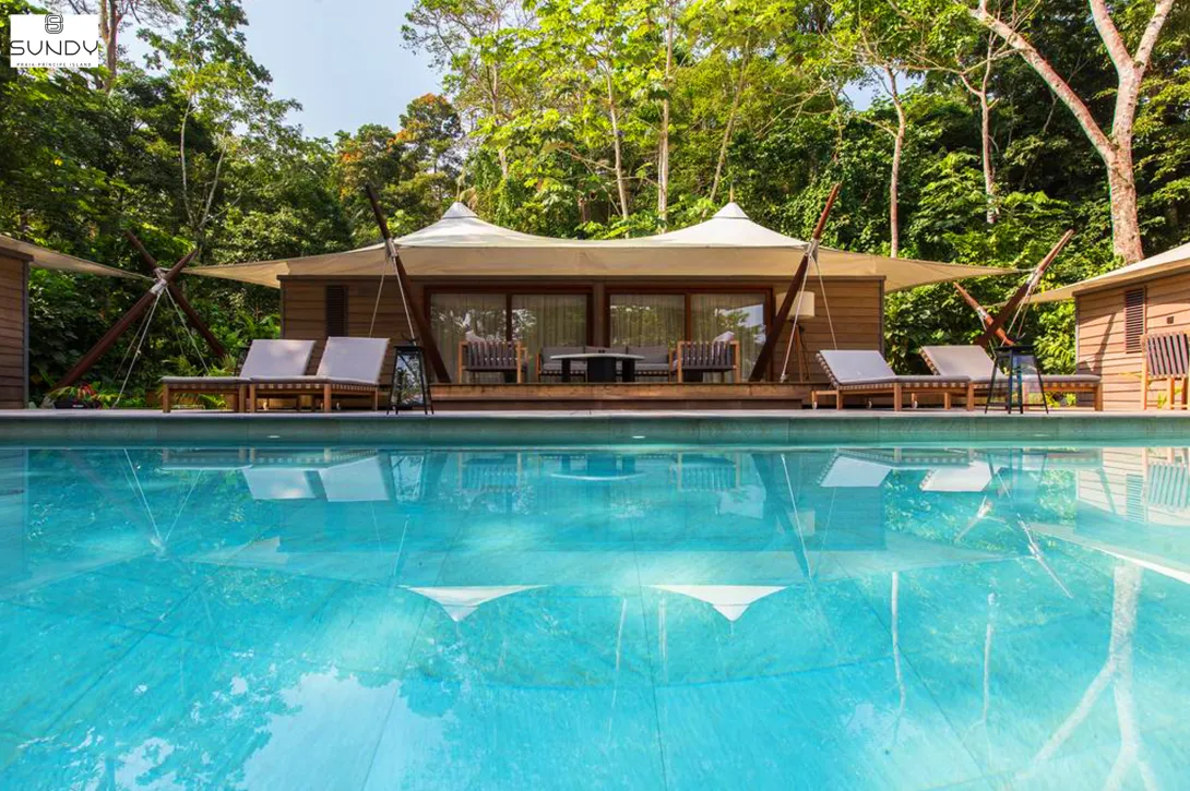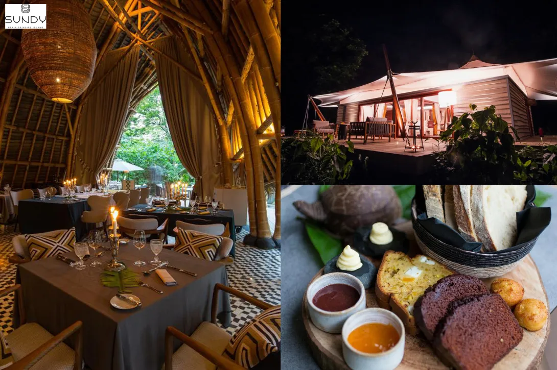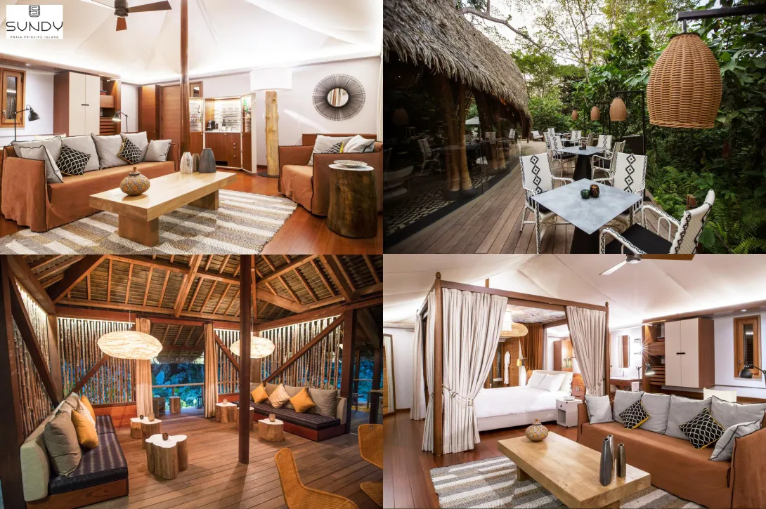 Criando o equilíbrio perfeito entre o design natural e o conforto, as 14 villas em tendas do Sundy Lodge têm áreas interiores e exteriores espaçosas, incluindo terraços privados, alguns com a sua própria piscina de beiral privada. A natureza e o estilo são realçados na belíssima zona de refeições em bambu original. O seu restaurante é chefiado pelo conceituado Chef Italiano Angelo Rosso, onde este transforma as refeições numa jornada de culinária inesquecível, realizando a fusão entre produtos locais e a sua imensa criatividade. Sinta-se muito especial com o serviço de topo do Sundy Principe Lodge. Existe serviço de transporte gratuito na propriedade.